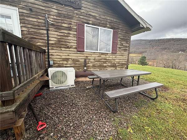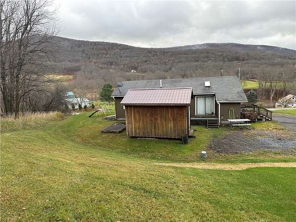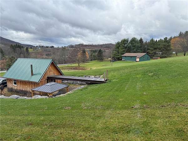 Discover the charm of Catskill living in this cozy 3-bedroom, 1-bath home set on 2.64 peaceful acres along a quiet, town-maintained road. Surrounded by nature and mountain scenery, this inviting property offers a wonderful balance of country privacy and convenience-just minutes from local amenities, shops, and dining. Step inside to an open-concept layout where the kitchen, dining, and living areas flow seamlessly together, creating a warm and comfortable space ideal for family life or weekend getaways. Natural light fills the rooms, highlighting the home's potential and welcoming atmosphere. The efficient heating system includes radiant heat and a mini-split unit, ensuring year-round comfort and energy savings. Outside, you'll find a beautifully crafted retaining wall framing the outbuilding-perfect for use as a workshop, studio, office space, or extra storage. An outdoor wood-fired furnace offers another efficient heat source and adds rustic charm to the property. Take in the scenic mountain views and enjoy the sense of calm that only country living can provide. While the home could benefit from some TLC, it presents an exciting opportunity for those looking to create their ideal Catskill retreat. With good bones and a flexible layout, this property is ready for your personal touch-whether you're dreaming of a full-time residence, a vacation getaway, or an investment property with strong rental potential. Experience the best of rural living without sacrificing modern comfort. Quiet roads, open skies, and the natural beauty of the Catskills surround you-making this a wonderful place to unwind, explore, and call home.