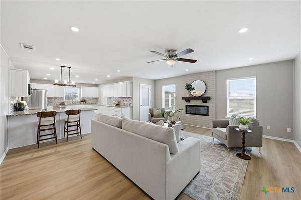 Set on 4.961 peaceful acres in the highly sought after Academy school district with a lower tax rate, this charming full brick home offers the warmth of country living with the comforts of modern updates. A durable metal roof and new windows add timeless character and long term peace of mind. Step inside to a spacious, light filled layout featuring new luxury vinyl plank flooring throughout. The kitchen truly serves as the heart of the home, thoughtfully updated with brand new stainless steel appliances, new countertops, soft close cabinets with a built in lazy Susan, a reverse osmosis system, and an air touch disposal. Whether preparing typical meals or hosting weekend gatherings, this space blends function with inviting country charm. The living room is anchored by a multicolor functional fireplace that creates a cozy centerpiece, perfect for slow evenings, warm conversations, and quiet nights at home. A versatile flex room offers endless possibilities and is ideal for homeschooling, crafting, a game room, or a peaceful home office tucked away from the main living space. Additional upgrades include new ceiling fans throughout, can lighting in most rooms, dimmer lighting in the hallway and primary bedroom, and pocket doors to two bedrooms that enhance space, flow, and everyday comfort. Outside, nearly five acres invite you to breathe a little deeper and enjoy the simple pleasures of country life. Picture back porch mornings with coffee in hand, room for gardens or animals, evening sunsets over open land, and space to roam without sacrificing convenience. All of this while remaining just minutes from schools, shopping, highways, and local amenities. This move in ready home offers the rare opportunity to enjoy a peaceful retreat where life feels a little slower, a little quieter, and a whole lot more comfortable.