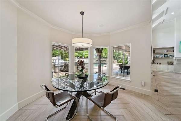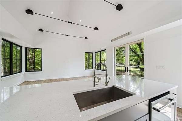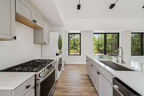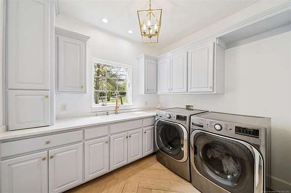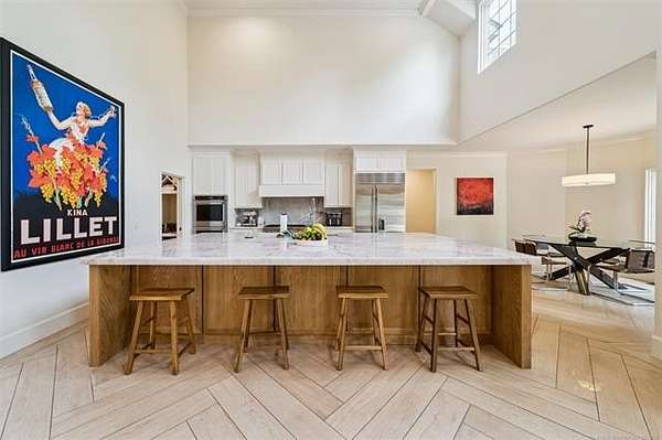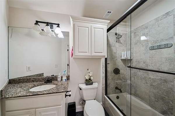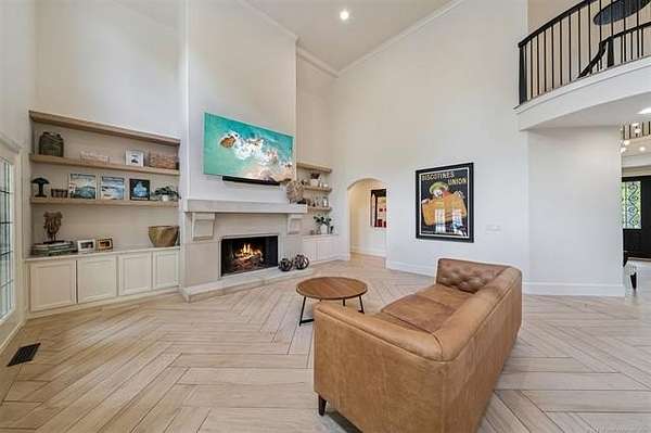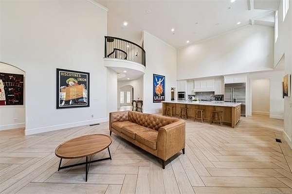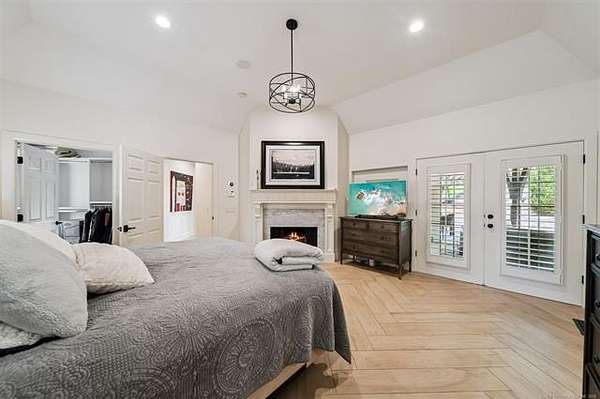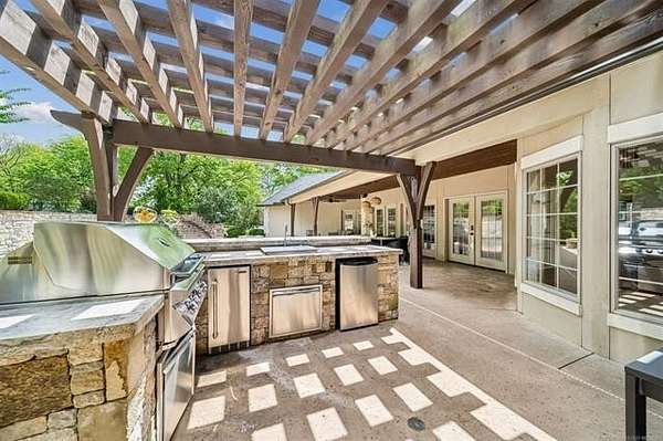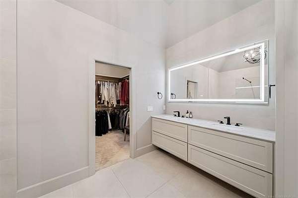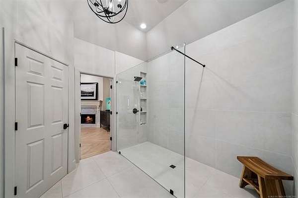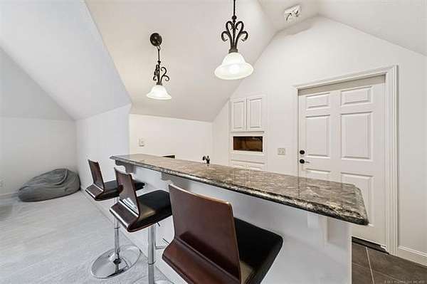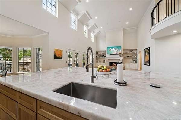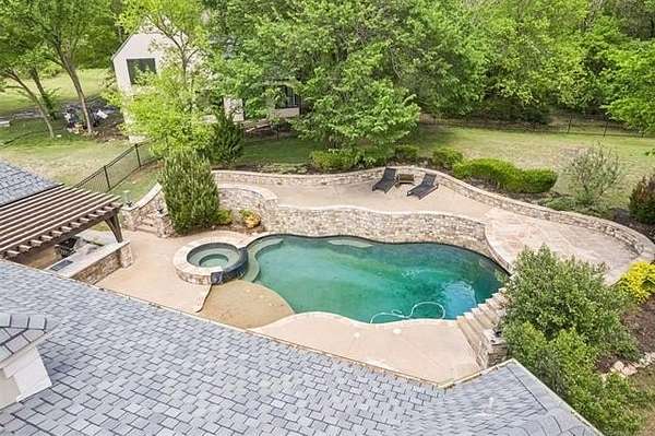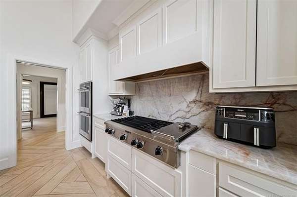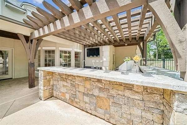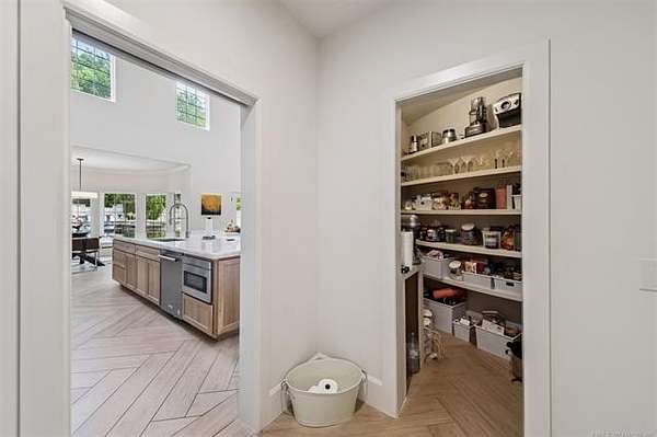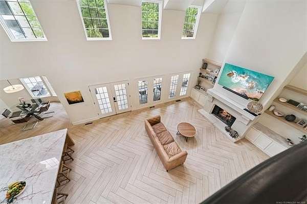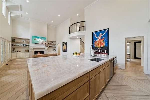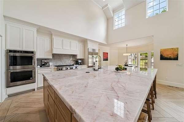 Exceptional 4-bedroom, 4.5-bath home with a brand-new additional 2-bedroom, 2-bath pool house, offering luxury, privacy, and extensive recent updates. The entire interior of the main home has been thoughtfully renovated within the last 18 months, including fresh paint throughout, a fully updated kitchen, and a stunning primary bathroom. Only the upstairs secondary bathrooms and wet bar remain in original condition. The spacious kitchen is a true centerpiece, featuring soaring ceilings, abundant natural light, and beautiful quartzite surfaces carried throughout the countertops, backsplash, shelving in the main living area, and primary bath and vanity-creating a cohesive, high-end design. Solid oak cabinetry and striking herringbone wood-look tile flooring add both durability and elegance. The open living spaces showcase impressive ceiling heights and overlook the backyard oasis, seamlessly blending indoor and outdoor living. Step outside to enjoy the pool area, complemented by a newly built, beautifully designed pool house-perfect for guests, entertaining, or multi-generational living. Situated on a quiet cul-de-sac within a gated community, this property offers rare privacy, enhanced by an adjacent lot owned by neighbors with a first-right purchase option-providing additional space and separation. The natural setting attracts local wildlife, including deer, creating a peaceful and scenic environment. Conveniently located with easy access to Tulsa Hills and the greater Tulsa area, this home combines luxury updates, functional design, and an unbeatable location.