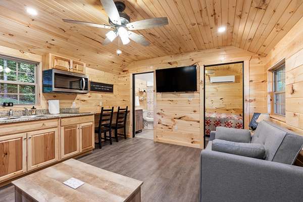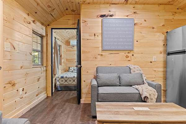Welcome to your charming 2-bedroom cabin nestled in the heart of nature, newly constructed in 2022. Escape the hustle and bustle of city life and unwind in this cozy retreat where you can reconnect with the great outdoors. Enjoy the serene country views of 44 acres of wooded landscape off the covered porch, equipped with your very own hot tub or relax by the fire pit with family and friends. Currently, this property is being used and an Airbnb but the possibilities are endless. The property has the potential for 4 other plots. Don't let this opportunity pass you by!