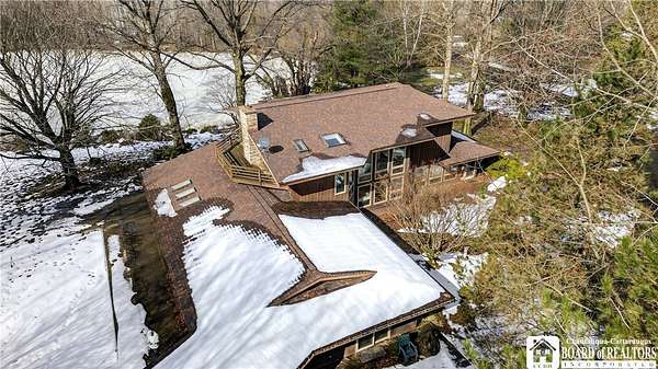 Stunning 9.8-Acre Retreat Overlooking a Serene Pond - 4BR / 2BA / 3-Car Garage - Nestled on nearly 10 acres of peaceful, wooded landscape, this remarkable 4-bedroom, 2-bath residence offers the perfect blend of modern comfort and natural beauty. Overlooking a large tranquil pond, the home's expansive windows and skylights invite abundant natural light, framing picturesque views from nearly every room. Step inside to discover 3,009 square feet of thoughtfully designed living space, highlighted by an elegant oriental-inspired decor and a soothing outdoor Koi pond. The main level offers an open layout with 2 separate areas for a family room ideal for entertaining, 3 first floor bedrooms with a full bath, while the master suite features a private deck, two walk-in closets, meditation area or small office and a private deck with breathtaking views of the wooded landscape and sparkling pond below - the ultimate place to unwind. Outdoors, enjoy a spacious concrete patio perfect for gatherings, plus a charming tea house/guest house awaiting finishing touches to make it uniquely yours. The property's geothermal heating / cooling system provides efficient, eco-friendly comfort year-round. Originally purchased in 2004 and used primarily as a relaxing vacation getaway for the past two decades, this home radiates a sense of tranquility and timeless charm.