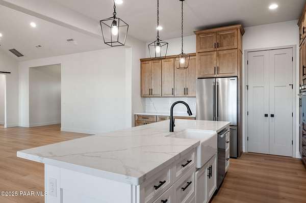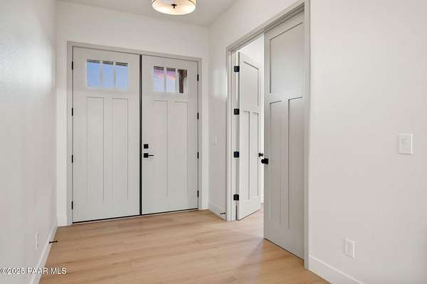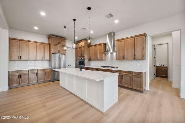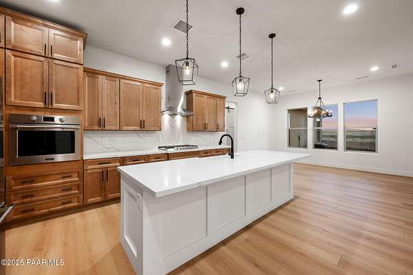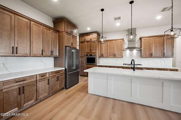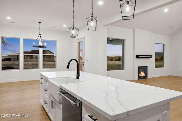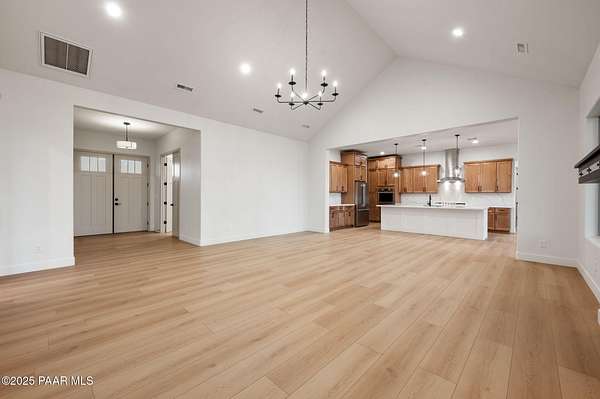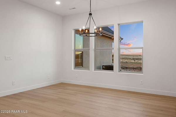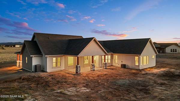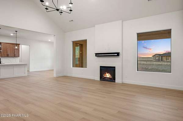This brand new custom home offers stunning luxury in a beautiful one of a kind floor plan. This 3 bedroom, plus office, 2.5 bath home features thoughtful details and design throughout with a fantastic floorplan including high end, wide plank, solid surface flooring throughout. The great room features a 15-foot ceiling vault, picture windows, and an inviting fireplace. The great room also has access to an oversized covered back patio with 10 foot arched beams to take in the panoramic expansive views. The kitchen is an entertainers dream with a large island, walk in pantry, upgraded cabinetry, quartz countertops and backsplash, and Frigidaire professional package. The Primary suite offers a private a spa-like bathroom with separate dual vanities, soaking tub, walk-in shower and impressive closet. The construction of this home features spray insulation for both the home and the 933 sq ft 3 car garage making it incredibly well insulated and energy efficient. It also features two different heating and air conditioning packages and temperature controls, allowing for different zones throughout the house.On the exterior, you will find $30k of upgrades in the beautiful beams alone. The front beams are solid 12x12 making a truly impressive entrance facade with massive appeal.