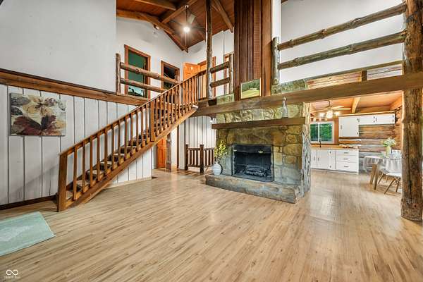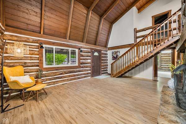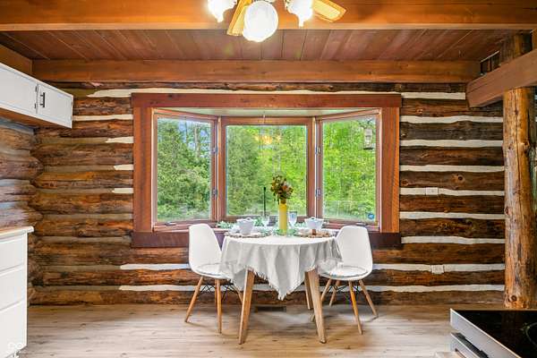 Priced to sell, short sale. Rustic multi-level Log Cabin on 11.5 acres, tucked away among towering trees, offers charm and serene wooded privacy. With some TLC, and your personal touch, this property is full of potential to become a forever home or private retreat. The main level features a spacious primary bedroom ensuite with double walk-in closets, and offers the convenience of a main floor laundry, an eat-in kitchen with bay windows, and a pantry. Upstairs you'll find two additional bedrooms, a versatile bonus room- perfect as a fourth bedroom or office. Enjoy evenings in the cozy living room by the gas-log fireplace, peaceful mornings on the covered porch, or gatherings on the large back deck. The property includes a 30x40 old pole barn with concrete floors and electricity and a chicken coop. County says the acreage has potential to subdivide 3 additional lots from the larger parcel, but would require buyer's due diligence to obtain approval. Conveniently located, just a 5 minute drive up the road from Indian Creek Schools!