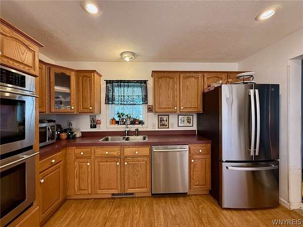 A rare opportunity to own 5.5 acres in the Wheatfield School District! This beautifully maintained, move-in-ready 2-bedroom, 2-full-bath home offers space to expand and enjoy peaceful country living with privacy. The expansive property provides endless possibilities-perfect for outdoor recreation, gardening or potentially adding outbuildings such as a pole barn, workshop or additional garage. A blend of open space & wooded area creates a serene setting while still being conveniently located. Inside, the home features a welcoming foyer with a coat closet & first-floor laundry. The spacious eat-in kitchen offers abundant cabinetry & counter space, a built-in double oven, gas cooktop, center island for food preparation, pantry, recessed lighting, & beautiful laminate flooring. A sliding glass door fills the space with natural light & leads to the side yard. The oversized living room is bright & inviting with multiple windows & additional storage. The primary bedroom suite features a full bath with a jetted tub, tile flooring, separate walk-in shower, & closet. French doors open to the backyard, creating a relaxing retreat. The second bedroom includes two closets and the second full bath has a walk-in shower and tile flooring. Additional features include an attached two-car garage with built-in shelving & additional access to the crawl space. Handicap-accessible ramp and a concrete side pad. Numerous updates include a newer roof (2 years), furnace (2 years), brand-new hot water tank, updated electrical, glass block windows, and two sump pumps one replaced 2025. The basement has been recently insulated, offers high ceilings and a double sink presenting excellent potential to be finished for additional living space. Outdoor convenience ensured with a Ring doorbell camera and backyard flood light. A short drive away, enjoy Fairmount Park, a spacious 50-acre town-owned gem featuring a walking track, picnic shelters, playground, fishing pond, baseball/softball diamonds and soccer fields. Ideal for family fun, exercise, and community activities right in your neighborhood. Tax records show manufactured home but this was not an option in the ML based on age of home.