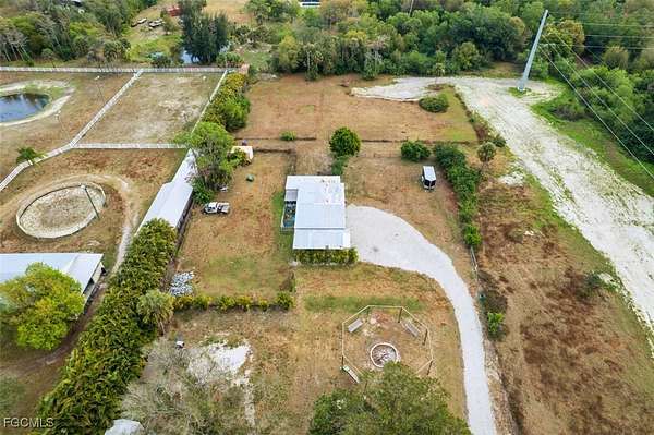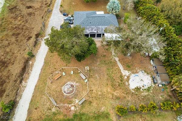 Buckingham country horse farm on just over 5 acres-ready for a new family and a few horses to call it home! This agriculturally-zoned property is fully fenced and cross-fenced with a double-gated entry, offering an ideal setup for horses, livestock, and country living. With an approximate 40' x 31' barn/workshop, 4 stalls, covered RV parking, and 5 paddocks with water run to each, this is a fantastic opportunity for anyone looking to create their own working farm or equestrian retreat. This property is thoughtfully set up with electric fencing, and even includes a pig shed, making it ideal for a variety of animals. Located near the Buckingham Trails Preserve, you'll also enjoy access to great riding paths nearby. The ranch-style home features 3 bedrooms, 2 bathrooms, a split-bedroom floorplan, and an attached 2-car garage. One of the best features of this home is the incredible indoor/outdoor living space, including large screened front and back lanais plus a covered rear patio. The back patio and lanai are truly the heart of the home-a perfect place to sit with your morning coffee, enjoy evening dinners in Florida's beautiful weather, and take in peaceful views of your land and animals. Major updates have already been completed including a roof (2017) and A/C (2020), along with designer paint, a newly remodeled kitchen, and a graveled extended driveway. This property offers excellent functionality with two wells-one dedicated to the home and one for livestock, helping support efficient day-to-day farm living. Outside is where this property truly shines with space to gather and enjoy the country lifestyle. You'll love the custom fire pit area, featuring a large built-in fire pit with four hanging swings-a perfect gathering spot for family and friends. An electric run to the fire pit area powers the lighting around the swings, creating a fun and inviting atmosphere for evenings under the stars. Additional features include a spacious 12' x 14' laundry room with a shower (already outfitted for the possibility of a third full bath), plus an efficiency guest house/shed/bonus space (not included in square footage) that is drywalled, insulated, and has running water to it, making it incredibly versatile for guest space, a hobby room, office, tack room, or future expansion. Extra outbuildings provide even more storage and workspace. No flood insurance required. Conveniently located just minutes from I-75, SR 80, and SR 82, plus shopping, dining, and everyday essentials. While the home key updates already completed (A/C and Roof), the land and outdoor spaces offer the next owner an exciting opportunity to refresh and enhance the property to match their lifestyle. The setup is already here-just waiting for new livestock, new memories, and a new family to bring the paddocks to life again.