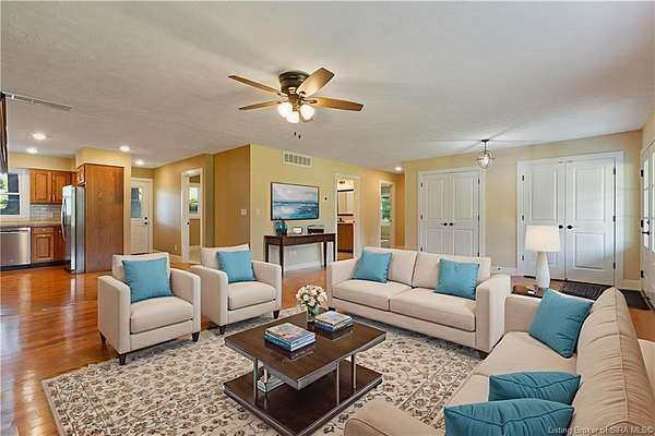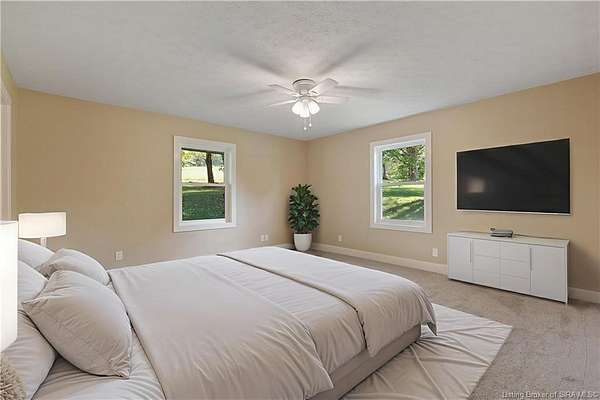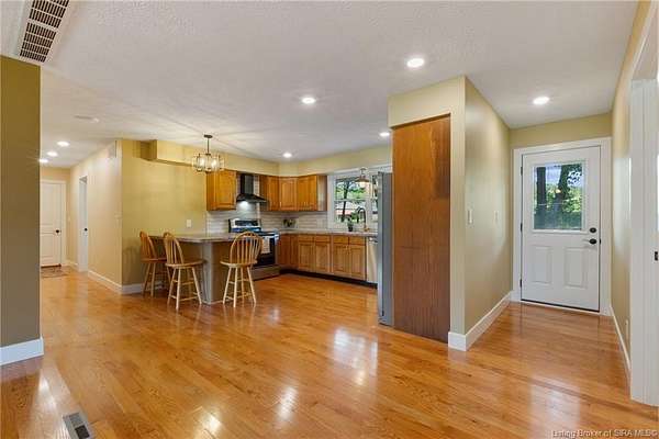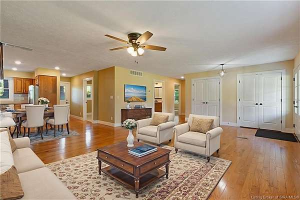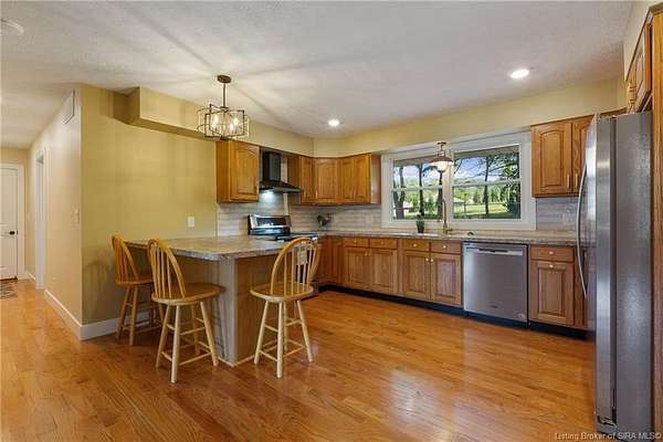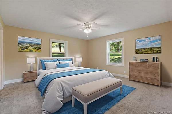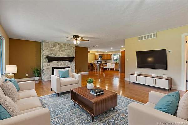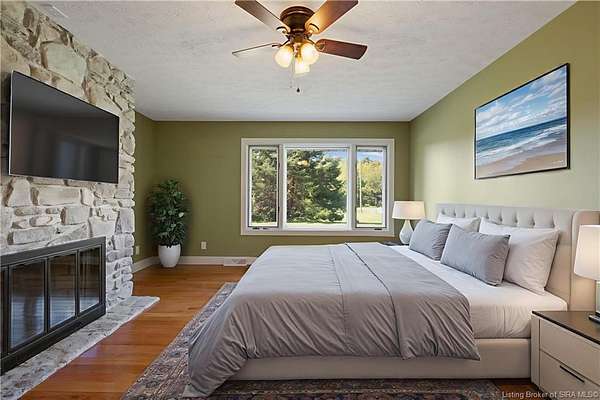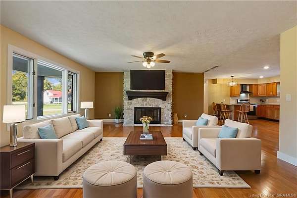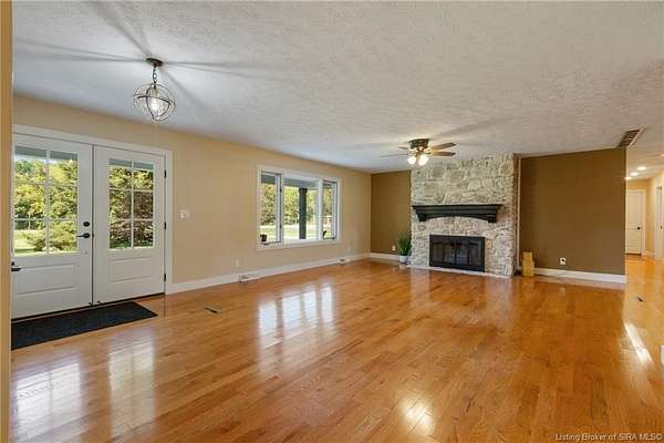 Sewers not septic! Rare find! Welcome to 6975 Main St. NE - a beautifully remodeled home built by well-known custom builder Gary Longest. Known for his solid craftsmanship, this 1975 home is now updated with today's modern touches while keeping its timeless quality intact. Offering 2,100 finished square feet, this spacious home features 4 generously sized bedrooms and 2 full baths. The owners have just completed an impressive remodel, including new roof, new HVAC & water heater, fresh hardwood floors & new carpet in 3 bedrooms, updated bathrooms with gorgeous finishes & lovely tile floor, new interior & exterior doors, new counter tops, new garage doors & openers. The living room and the main bedroom have gorgeous stone woodburning fireplaces. The owner's suite has a ginormous walk-in closet. Additional upgrades include a whole house generator, a new vapor barrier with spray foam insulation in the crawl space, walk in closets, some new windows and so much more. The oversized 2.5-car attached garage and long driveway provide plenty of parking. Enjoy your morning coffee or evening gatherings on the large composite deck. This home also features a fenced backyard and a sprawling 2.5 AC lot. The huge front yard adds curb appeal and space to spread out. If you've been looking for a well-built, move-in ready home in Lanesville with plenty of land, this is it! Conveniently located, thoughtfully updated, and ready for its next chapter.