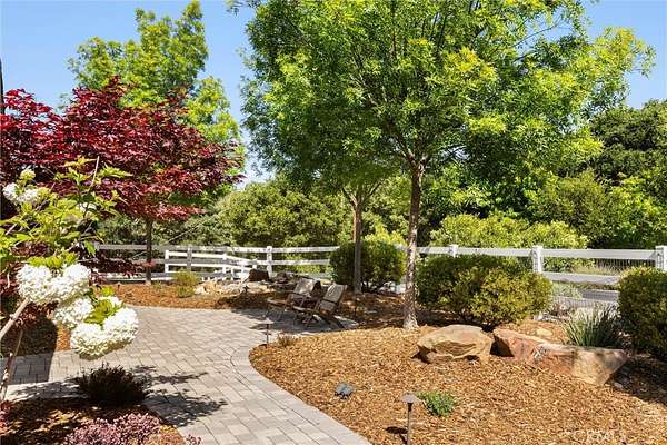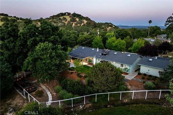 Peaceful and private, yet just minutes from downtown Atascadero, this beautifully updated ranch-style home offers the perfect blend of convenience and country living. Situated on 1.6 acres, this spacious 2,357 sq. ft. residence features 4 bedrooms and 2 bathrooms, including a primary en-suite and a secondary bedroom with its own attached full bath—ideal for guests or multi-generational living. The home boasts a recently updated kitchen and bathrooms, an extra-large mud/laundry room with utility sink, and multiple inviting living spaces, including a large family room with a gas fireplace insert with smart electronic control and an additional living area with a wood-burning fireplace. Expansive energy efficient Milgard picture windows throughout with plantation shutters that showcase serene views of mature landscaping and oak-studded hills. Step outside to enjoy fully fenced front and back yards, a covered patio with drop-down sun shades off the kitchen/dining area, and an additional deck overlooking a seasonal creek that runs through the property. Garden enthusiasts will appreciate the separate deer-fenced garden area, raised beds, and established fruit trees including apricot, pear, plum, and apple, along with thriving pomegranate and artichoke plants. Car lovers and hobbyists will be thrilled with the oversized 5-car garage and ample additional parking. The property is equestrian-friendly and well-suited for 4H animals or pets. A Tuff Shed is also included. Accessed via a shared paved road with only two neighbors and no HOA, this flag lot offers both privacy and accessibility. Recent improvements include Section 1 clearance, septic certification, and completion of seller-corrected inspection items. An exceptional opportunity for a family home or multi-generational living in a peaceful, scenic setting.