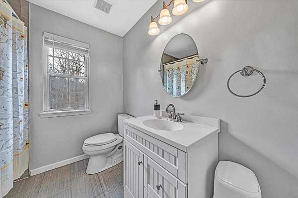 All-brick Colonial beautifully set on four private, wooded acres-this is the kind of home that captures your heart before you even step inside. An updated eat-in kitchen with Corian countertops, a spacious dining area, and an inviting living room with a wood-burning fireplace open to a rear deck overlooking the expansive backyard. The upper level offers three bedrooms and a charming reading nook you won't want to miss. The lower level includes a fourth bedroom, a family room with an electric fireplace, and walk-out access to the rear yard. Less than 10 minutes to shopping and restaurants, this home offers the perfect balance of privacy and convenience