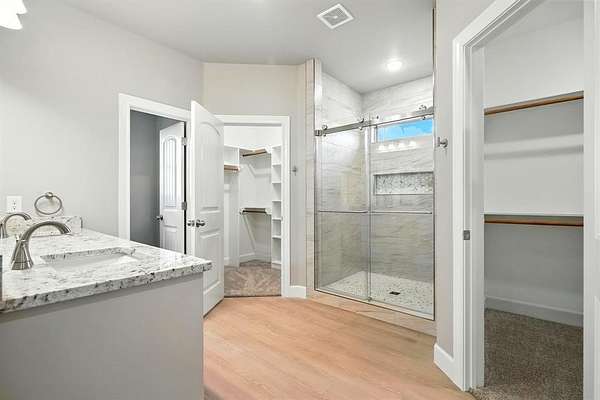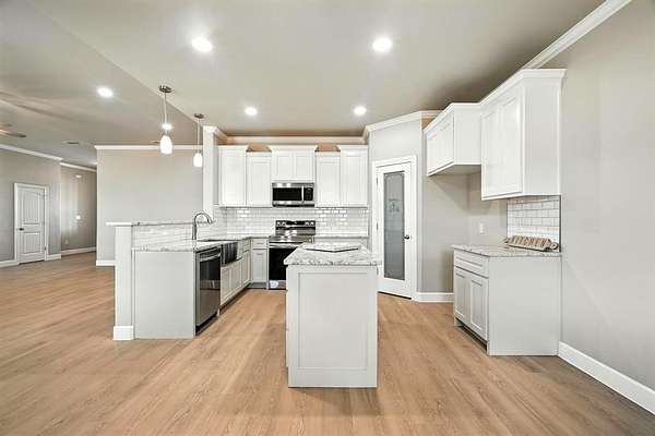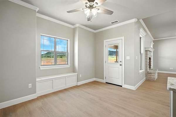 This new construction home sits on 13+ acres in Wylie West School District. This custom-built home delivers attention to detail, functional design, and great views. Located at the end of a quiet country cul-de-sac off the freshly paved County Road 321. Custom designed mailbox marks the entrance to the over-sized private driveway offering additional parking and functionality to add a detached shop. The vaulted front patio and 8 Ft double doors create a spacious and inviting entry. Open floor plan with neutral tones and abundant natural light. Gourmet kitchen with custom cabinetry with under lighting, granite counters, island, stainless steel appliances, undermount chef sink, and walk in pantry. Split-bedroom floorplan. West hallway leads to laundry room, mud bench area, guest bathroom, and the garage. Adjacent hallway leads to the primary suite with luxury vinyl floors and baseboard lighting. En-suite includes dual vanities, an oversized tiled shower with designer accents, and 2 walk-in closets. Spacious laundry room with additional hanging space, bar, and laundry chute door to primary bedroom. Additional bedrooms offer ample closet space and plush carpeting. Secondary bathroom with built-in storage, granite counters and a clean, bright design. Over-sized over 600 Sqft. garage with additional storage space. Sprinkler system. Rocked flowerbed and rain gutters to ensure ideal drainage. Ample exterior lighting. Fenced perimeter. Quiet and private while only minutes from Abilene. This home is fully move in ready, the builder planned for every detail. Southwest on Us-277, left on County Road 321, Home is at the end of the cul-de-sac.