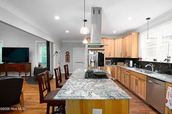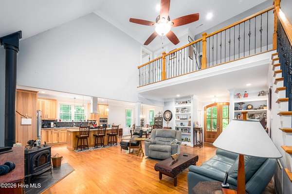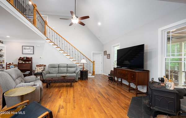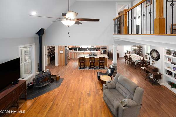 - Bookcases, Ceiling Fan(s), Entrance Foyer, Generator Plug, High Ceilings, Kitchen Island, Master Downstairs, Mud Room, Pantry, Solid Surface, Vaulted Ceiling(s), Walk-In Closet(s), Walk-In Shower, Wood Burning Stove