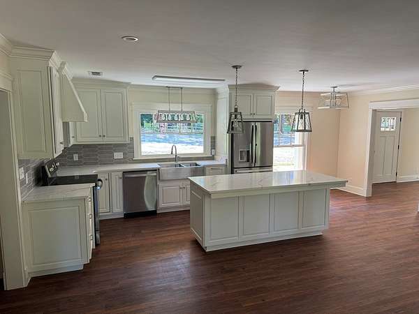 Built-In Bookcases, Granite Counter Tops, Kitchen Island, Lighting Recessed, Newly Painted, Specialty Ceilings