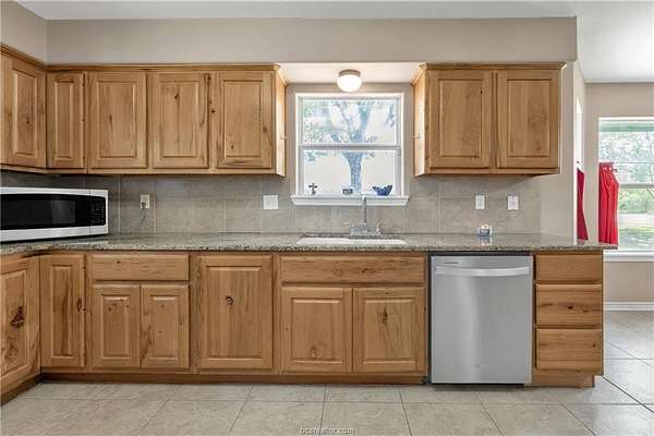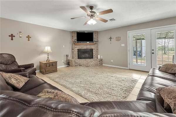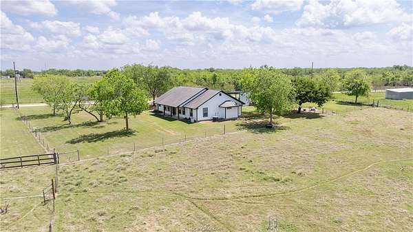 Beautifully maintained 4 bedroom, 2 bath home within walking distance to Iola ISD, situated on 5.63 acres with scattered trees and mostly open pastures. This home offers 2,019 square feet of living space, built in 2004, with hard surface flooring throughout for durability and easy upkeep. The oversized living area features a cozy wood burning corner fireplace and direct access to the covered back patio, perfect for relaxing or entertaining. The kitchen includes granite countertops, stainless steel appliances, electric range, and wood stained cabinetry, all open to the dining area filled with abundant natural light. The spacious primary suite includes two closets, dual sinks, and a separate tub and shower. Three secondary bedrooms share a conveniently located hallway bathroom with double sinks and a tub/shower combination. Three strategically placed storage closets throughout the home provide additional storage space. Outside, the property is perimeter fenced with cross fencing, making it ideal for livestock or agricultural use. Ideal for 4-H or FFA projects! Outdoor improvements include a 1 car garage with roll up door, additional 2 car carport, storage building with electricity, and a barn. Wickson Water services the property, and MidSouth Fiber internet is available. Enjoy peaceful country living in the highly highly regarded Iola school district with the convenience of nearby schools and town amenities.