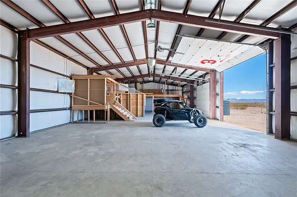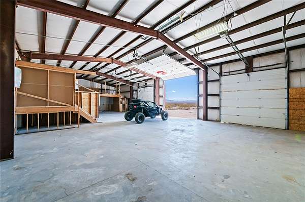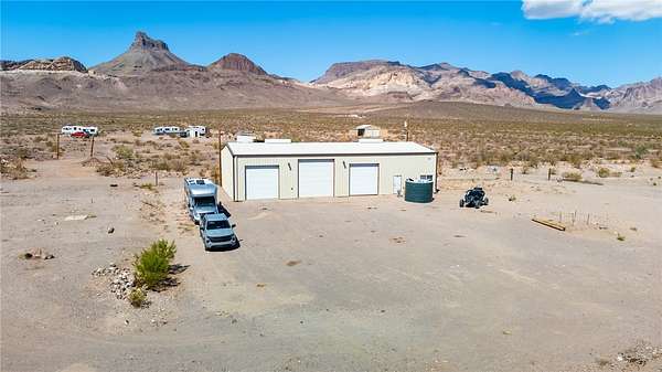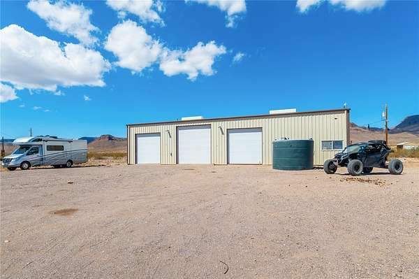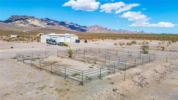 This one-of-a-kind 40-acre property offers incredible views, privacy, and all the key improvements already in place. The property includes a 40x80 red iron shop with a 14' plate line, two 12' doors, and one 14' door all with openers and 220V power with skylights providing natural light. The 6" concrete floor is reinforced with fiber and upgraded mesh for heavy-duty use. There are three home-site pads, each with its own septic system, and two with power poles and panels already installed. A private well provides water to eight strategically placed spigots, each protected under metal covers. The land also features two 32x63 corrals, a motorized hot walker, and terraced areas ideal for creating pasture space. The shop s electrical panel has been recently inspected and certified to code. Located in a peaceful area with only one nearby neighbor, this property borders the Mt. Nutt Wilderness and offers stunning views of the Black Mountains. The homes have been removed, allowing you to start fresh with your dream build, and all four corners of the property are visibly marked from a completed survey.