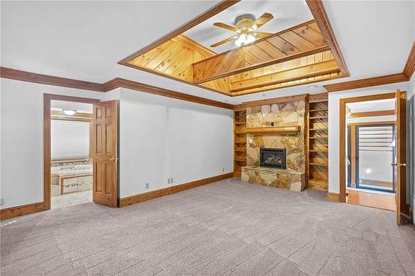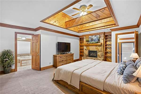 The main level offers three spacious bedrooms, including a primary suite designed for comfort and relaxation, complete with a cozy fireplace and a large en suite bath and walk in closet. There are four full bathrooms on the main level, including one conveniently located in the garage, ideal for busy families or outdoor lifestyles.