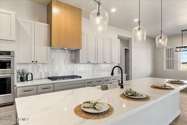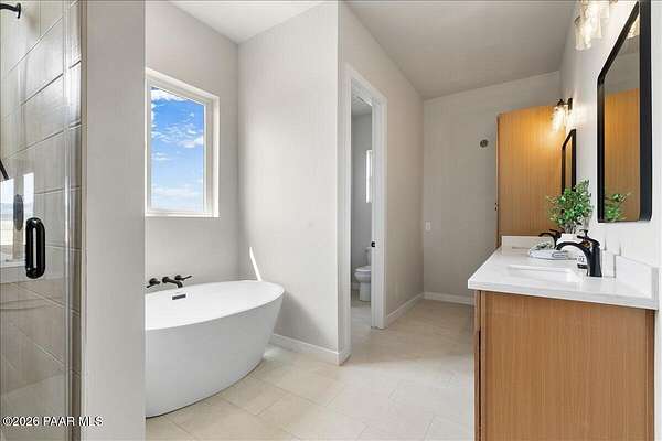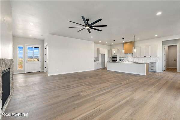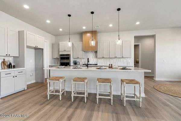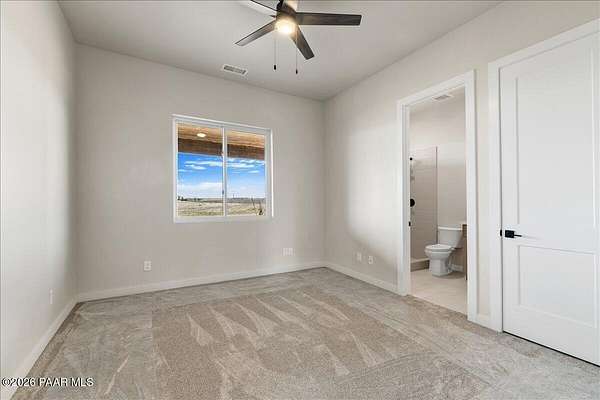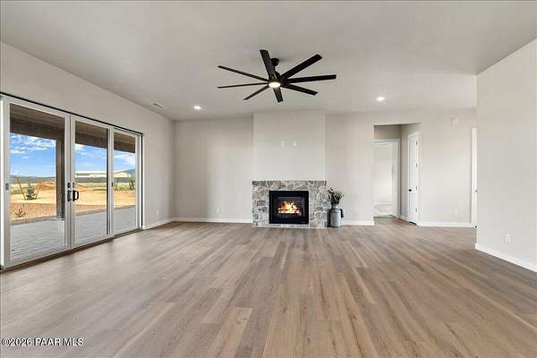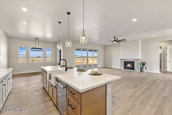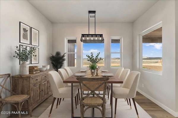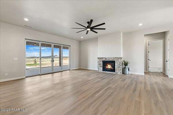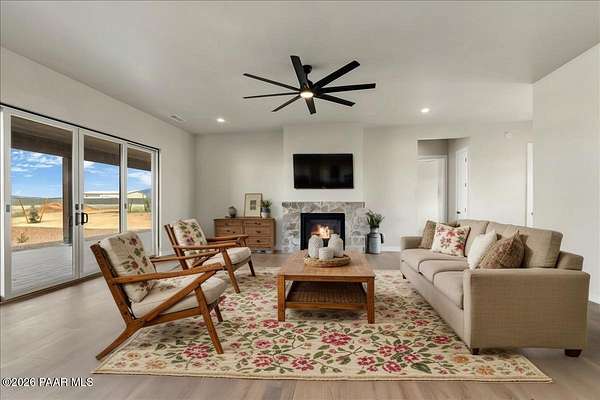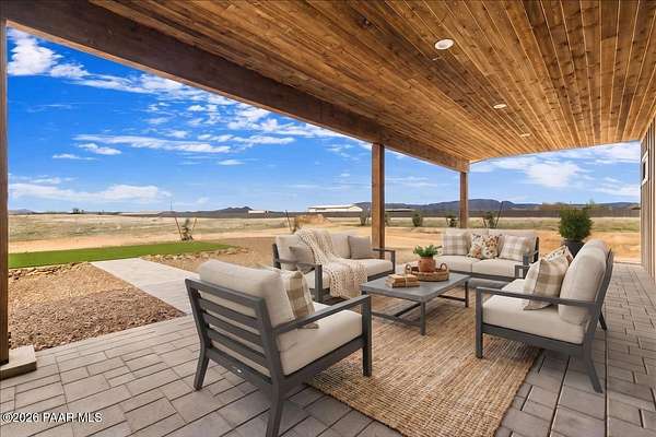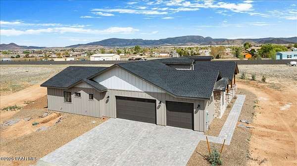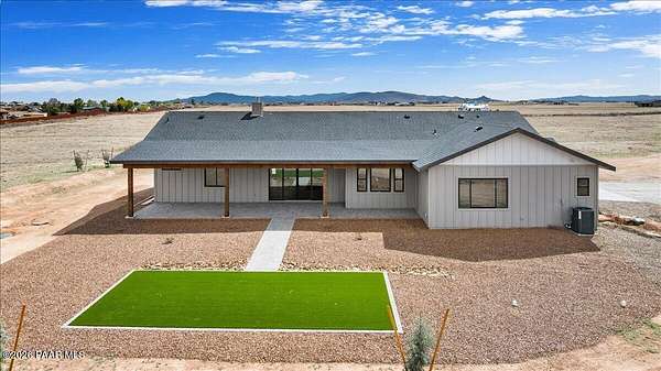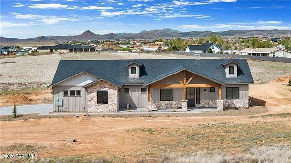 Luxury HORSE PROPERTY in the Copperfield Gated CommunityExperience the perfect blend of luxury and country living with this exceptional horse property located in the highly sought-after Copperfield community--one of the few lots in the subdivision that allows horses.Situated on an expansive 4-acre parcel, this stunning 2,600 sq ft home offers 4 spacious bedrooms and 3.5 bathrooms, thoughtfully designed to provide both comfort and functionality. The open-concept layout features generous living spaces, ideal for entertaining or relaxing, while large windows frame panoramic views of Mingus, Bradshaw, and Granite Mountains.The heart of the home is a beautifully appointed kitchen, complete with a massive island perfect for gatherings, complemented by stylish farmhouse accents and durable laminate wood plank flooring throughout. Two bedrooms feature cozy carpeting, with one of the bedrooms set up as a private guest suite with its own ensuite bath offers an ideal setup for multigenerational living or visiting guests.Step outside to enjoy the expansive paver patio, highlighted by a rough tongue-and-groove ceiling--perfect for outdoor entertaining or peaceful evenings under the Arizona sky. Light landscaping has already been completed, reducing maintenance and making this property move-in ready. A privacy fence has been installed along the east side of the property for added seclusion.Copperfield is a prestigious gated community known for its strong well production, main paved roads, and spacious 4-acre minimum lots. Bring your horses and embrace the serenity of country living without sacrificing modern luxury. Additional surrounding land may also be available, offering the opportunity to expand your estate even further.Two acre parcel directly north is also available for sale under a separate listing. Road will be put in before close of escrow.