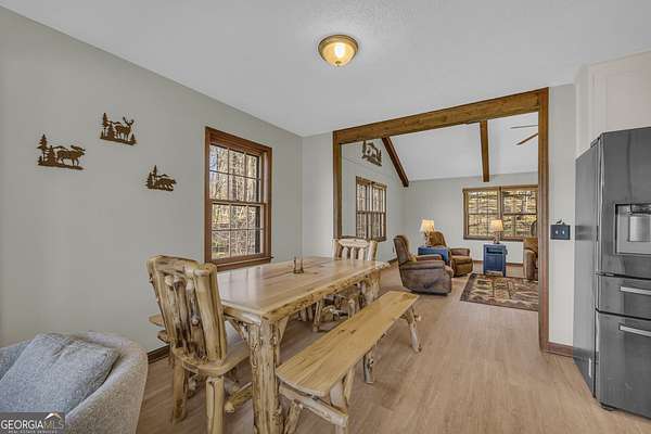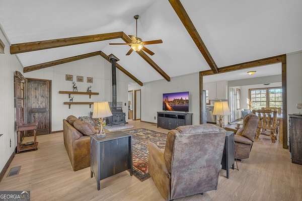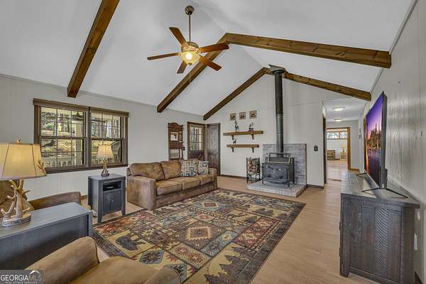 2026 is THE year for A NEW HOME ON THE SOQUE RIVER!!! This well maintained move in ready home is spacious enough to live full time or use as your mountain getaway. The covered front porch, complete with rocking chairs and a swing, and expansive deck make it easy to enjoy the outdoors. Soaring ceilings with wood beams, over 500 sq ft, and a private entrance to the deck make the primary bedroom a true retreat. The ensuite bath boasts abundant natural light with a soaking tub, double vanity and large separate shower. The kitchen and dining area have easy access to the back deck for grilling and entertaining. Enjoy your morning coffee in the adjoining sunroom overlooking the river. At night, settle in for movie night with the family. There's plenty of space for everyone and a wood burning stove to keep you warm. Downstairs is the perfect spot for guests. They will enjoy a private entrance, full bath and plenty of finished space. If the large unfinished area in the basement isn't enough to store all your river toys, there is a large shed with work bench and sliding barn door right next to the metal carport where you can fit an RV or camper. Grab your fishing poles, kayaks or both and take the path down to the river. A flat grassy area next to the river is the perfect place to hang out. If you don't feel like walking on your private path to the river, you can also access the river on the private road below. Your family will love jumping in a kayak and paddling (or floating) all the way down to Duncan Bridge Rd or even the Chattahoochee River! Grab your agent and go take a look at the perfect spot for relaxation and outdoor adventure on the SOQUE RIVER in HABERSHAM COUNTY.