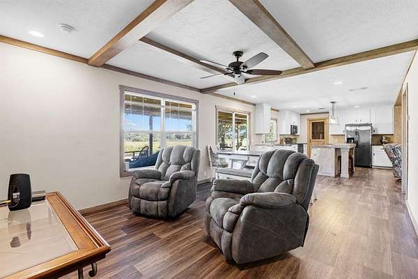 Escape the hustle and embrace country living on this 11-acre ag-exempt property, perfectly set up for a family compound, hobby farm, or peaceful rural retreat. The 2019 4-bedroom, 2-bathroom mobile home offers a spacious split floor plan, two living areas, and an open kitchen. Ideal for family life, multi-generational living, or hosting guests. Outside, you'll find a scenic pond, oversized barn for animals or equipment, and a dedicated RV hookup, making it easy to accommodate visitors or add another living space. The land backs up to a wooded area, offering added privacy, room to explore. With space to grow, raise animals, garden, or build additional structures, this versatile property is ready for your vision of rural living. The seller is including the washer, dryer, and refrigerator, making this home truly move-in ready. Schedule your tour today !