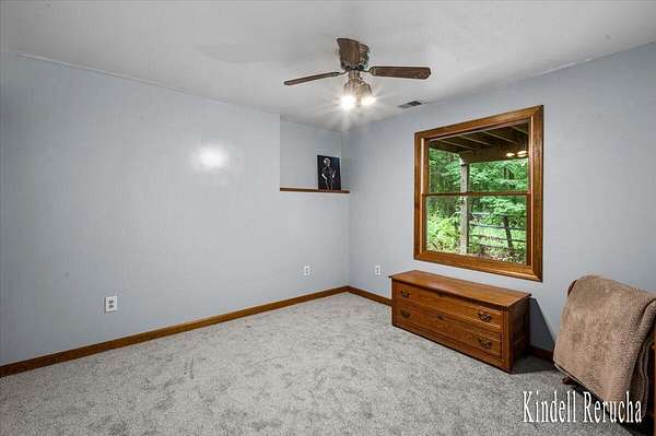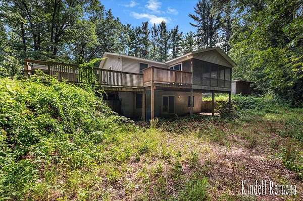 Escape to 4.6 private acres-perfect for hunting, homesteading, or simply soaking up nature. This ranch-style home offers main floor living with a bright kitchen, oversized walk-in pantry, dining area, and screened porch. The main level includes a bedroom, full bath, and laundry, while the walkout lower level features new carpet, 2 bedrooms, a bath, and bonus rooms for hobbies or office space. Watch wildlife from your hot tub, deck, or porch. Two sheds plus a garage lean-to provide storage for equipment, ATVs, or tools. A peaceful retreat with endless possibilities-bring your homestead dreams to life! Chickens are allowed! Pre-approved buyers only!
