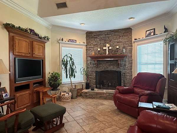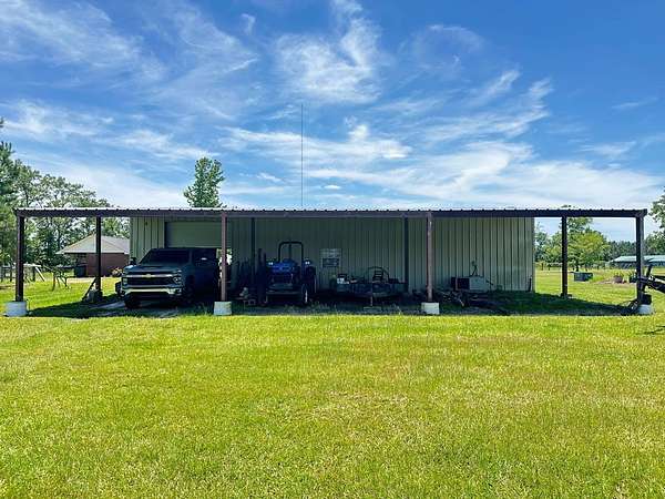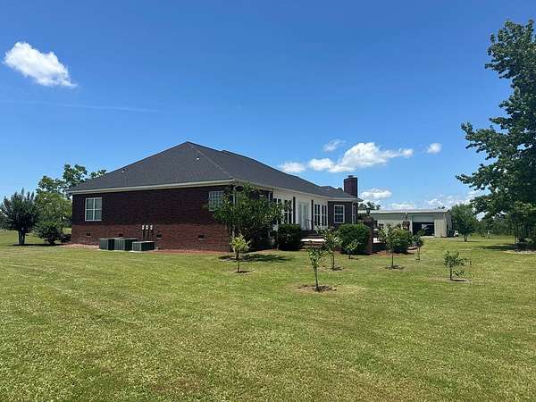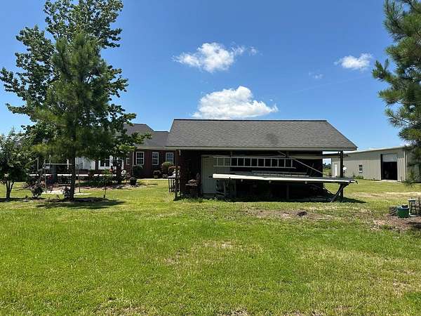 Country Living with 5 acres of pasture and 17 of pine tree. Enjoy the peaceful living in this custom-built with 2"x6" ext walls, well insulated brick home by Wylie Fletcher & Sons-4 BR, 2.5 Bath home, designed for comfort and entertaining. The main level offers spacious living areas including a sunroom, den w/ fireplace just off the kitchen, a formal dining room, and breakfast room. The kitchen is centrally located and open to living spaces, creating an ideal flow for gatherings. The main suite is a retreat, featuring a beautifully lit tray ceiling, dual walk-in closets, and a luxurious bath with double vanities, a tiled shower & soaking tub. Enjoy a bonus room/4th BR upstairs. The laudry/sewing room is very spacious! ALSO-huge metal building equipped with an impressive shop, a large enclosed office space, full bathroom, laundry room, and a 50' overhang, perfect for equipment. The well pump house also offers extra storage and an outdoor covered area. This could be your paradise!!