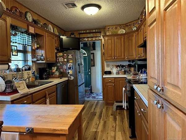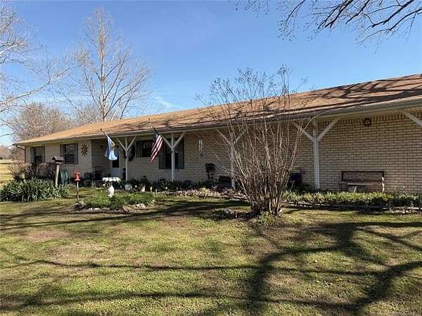This Ranch full brick home has a park-like setting on sitting on 2.5 Acres. Three bedroom, two bath, Covered porch & patio. Newer dishwasher & stove. 2 car garage AND 2 car carport. Large Storage building PLUS a 28x42 Barn includes slab and stalls. Fruit & pecan trees and shade trees. Lots of flower beds, garden and chain link fenced around the backyard. Total Electric (East Central) Rural Water.