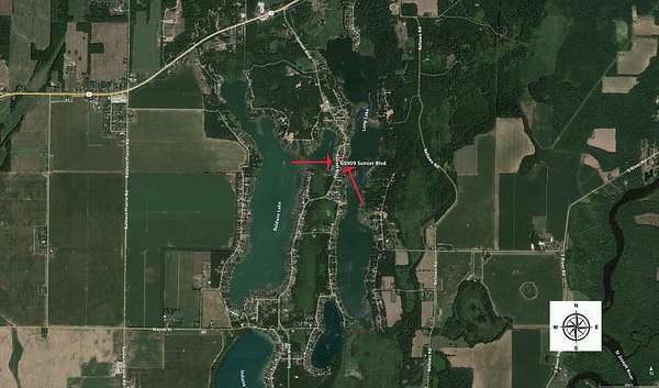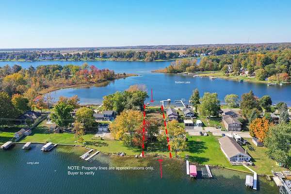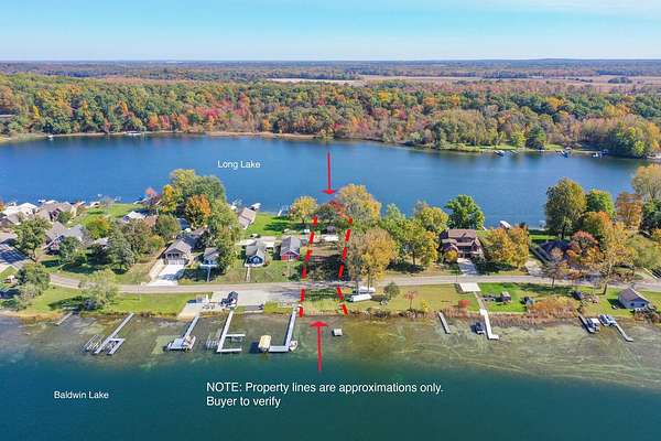 Est $3,817/moRare opportunity to build a new home with frontage on Baldwin and Long Lakes. Enjoy Sunrise and Sunsets with direct access to 540 acres of Lakes. There is also 350 sq foot structure on the Long Lake side that could be converted into a Tiki Bar. Located 2 hours from Chicago and 30 mins to Notre Dame.