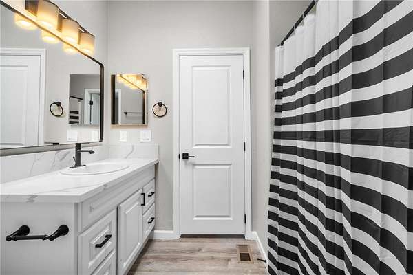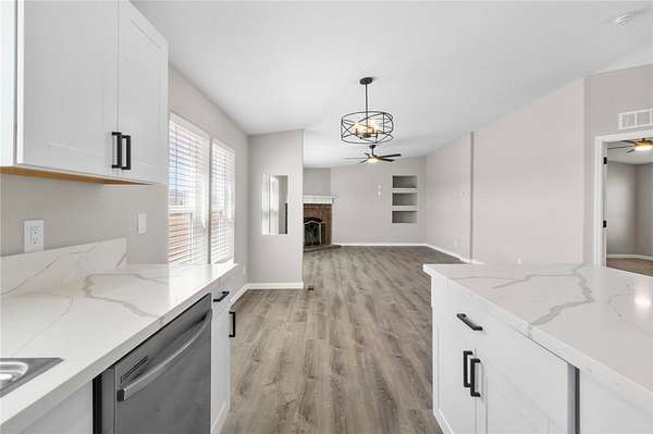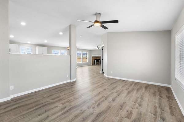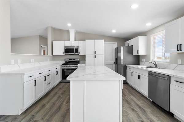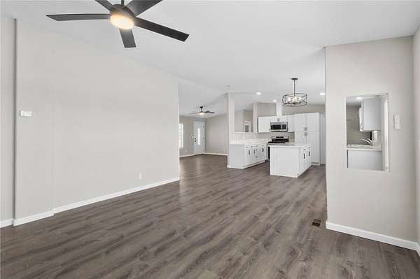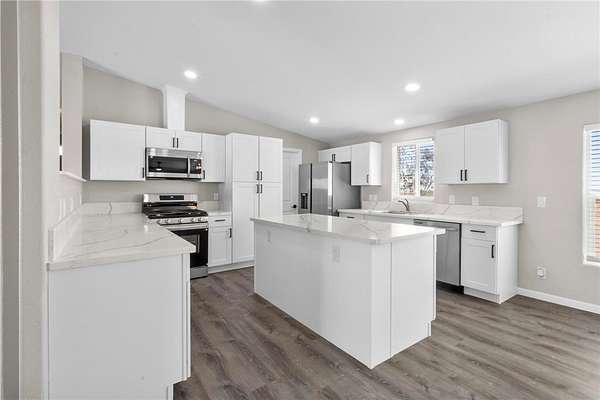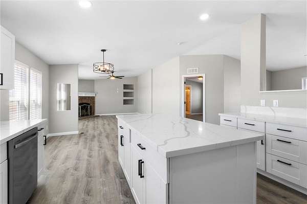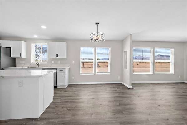 - Dining Area, Kitchen Island, Open Floorplan, Primary Suite, Stone Counters, Vaulted Ceilings, Walk In Closets