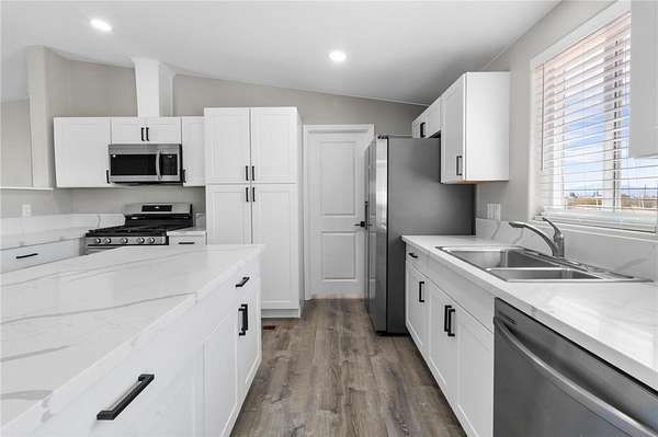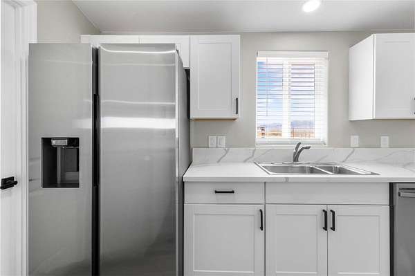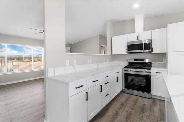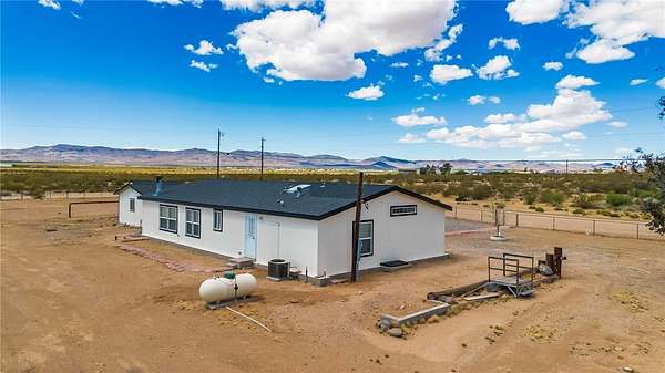 Fully remodeled 3 bed, 2 bath home in Golden Valley! Built in 2004, this 1,815 sq ft home features numerous upgrades including a new roof, new cabinetry and vanities, new countertops, new appliances (including refrigerator), updated electrical and plumbing fixtures, new flooring, and fresh interior and exterior paint. Central heat and A/C for year-round comfort. Ground set on a fully fenced 2-acre lot with chain-link fencing. Property includes a detached 2-car garage and propane service. Conveniently located less than 1/4 mile from paved road with easy access, surrounded by well-maintained site-built homes. Move-in ready with modern updates and plenty of space.