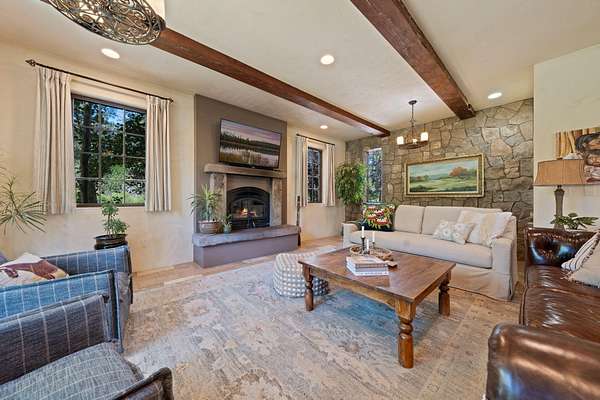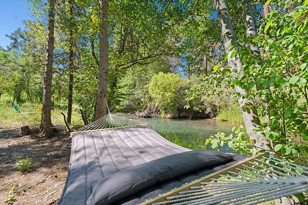 Discover tranquility on 4 acres with over 400 feet of frontage along Whychus Creek. The chef's kitchen boasts an AGA stove, dark walnut island, and polished bluestone countertops. Elegant details like 9-foot ceilings with reclaimed beams and gold travertine from Jerusalem enhance the warmth from the kitchen to the Great Room, featuring a wood-burning fireplace. This home offers efficient hydronic radiant floors and superior insulation for year-round comfort. Bedrooms feature 100-year-old reclaimed wood flooring, with the primary bedroom offering a vaulted ceiling and French doors to an outdoor oasis, complete with marble bathroom accents and a clawfoot tub. Guest rooms include French doors with custom Juliet balconies. Enjoy the serene creekside ambiance, with a wood-fired sauna nearby and access to a natural cold plunge swimming pool. Property boarders 129 acres of the Willow Springs Preserve managed by Deschutes Land Trust. Enjoy salmon, steelhead, otters, deer, elk and birds.
