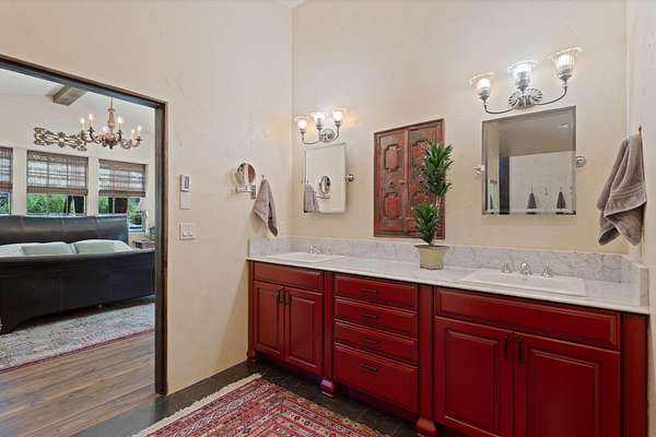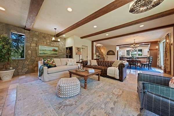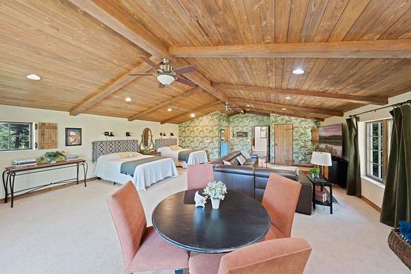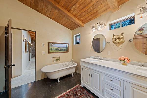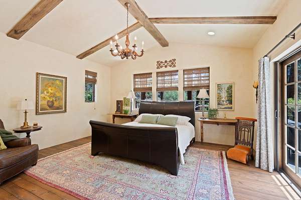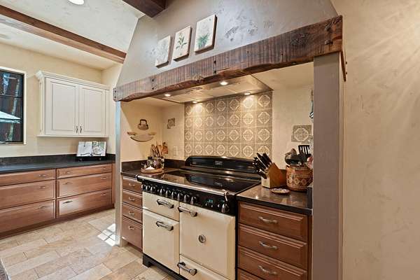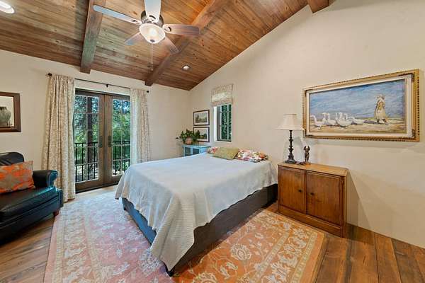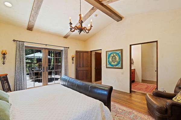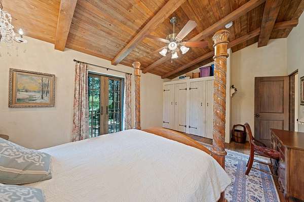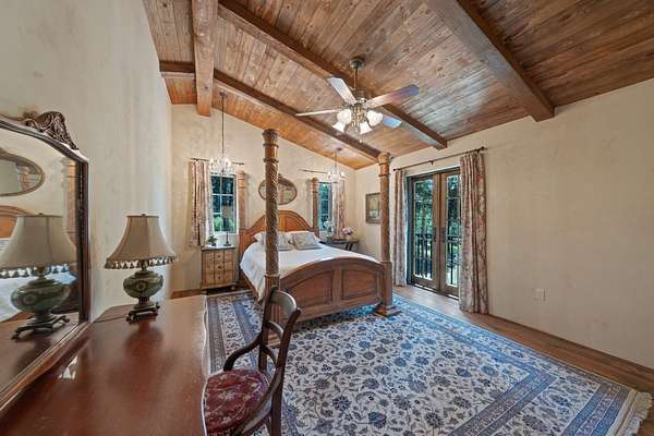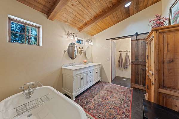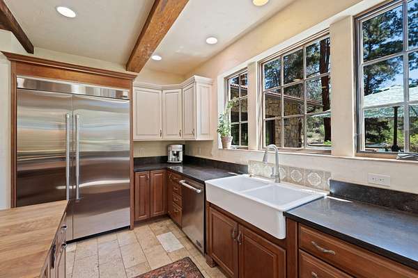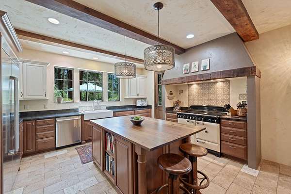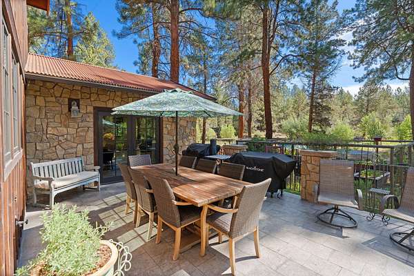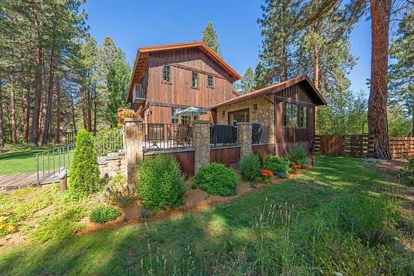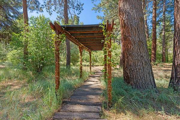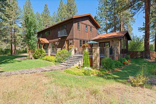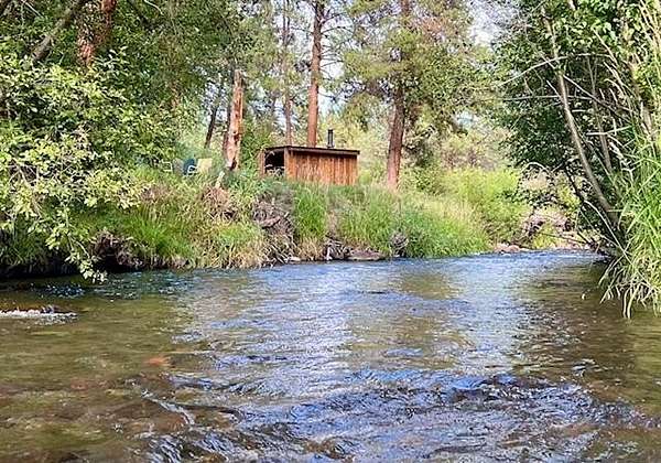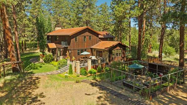 Discover tranquility on 4 acres with over 400 feet of frontage along Whychus Creek. The chef's kitchen boasts an AGA stove, dark walnut island, and polished bluestone countertops. Elegant details like 9-foot ceilings with reclaimed beams and gold travertine from Jerusalem enhance the warmth from the kitchen to the Great Room, featuring a wood-burning fireplace. This home offers efficient hydronic radiant floors and superior insulation for year-round comfort. Bedrooms feature 100-year-old reclaimed wood flooring, with the primary bedroom offering a vaulted ceiling and French doors to an outdoor oasis, complete with marble bathroom accents and a clawfoot tub. Guest rooms include French doors with custom Juliet balconies. Enjoy the serene creekside ambiance, with a wood-fired sauna nearby and access to a natural cold plunge swimming pool. Property boarders 129 acres of the Willow Springs Preserve managed by Deschutes Land Trust. Enjoy salmon, steelhead, otters, deer, elk and birds.