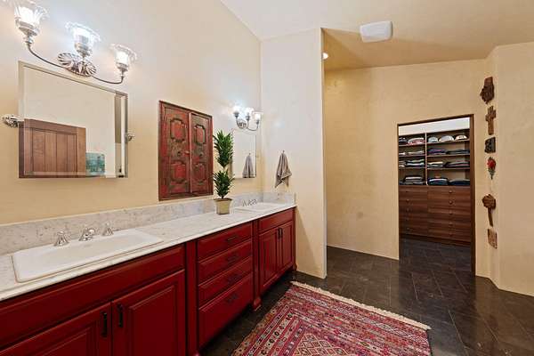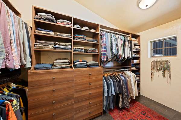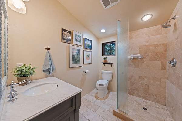- Ceiling Fan(s), Kitchen Island, Linen Closet, Pantry, Primary Downstairs, Soaking Tub, Solar Tube(s), Stone Counters, Tile Shower, Vaulted Ceiling(s), Walk-In Closet(s), Wired For Sound