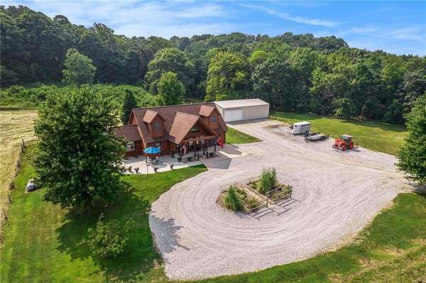 Seller is offering a $10,000 buyer allowable credit towards closing costs, rate buy down or improvements with full price offer! Your next adventure awaits with this gorgeous multi-recreational 24 acre+/- property. Retirement retreat, weekend getaway, hunters haven, or equestrian dream, come and make this 1.5 story 4 bed 3.5 bath main floor living home what you want it to be! Sit on the front porch or outdoor entertainment area and take in the picturesque views that include the brand new automatic feeders/self-watering horse barn and 1 acre +/- pond that is ready to be stocked! Sit on the back deck and watch the deer or play some pool in the huge loft with built-in office area, this home has so much to offer! Enjoy the open main floor vaulted living room, dining, and kitchen. Relax in the master suite with en suite jetted tub. Entertain your guests with plenty of space to accommodate them with basement recreation/hearth room, large newly tiled shower room, bunk room or optional storm shelter. Utilize all the indoor storage or for all of the outdoor toys in the large garage outbuilding. Use the land for play or hunting on the newly installed deer stand on the NW side of the property to watch the numerous deer that are drawn by the feeders, the east to west running watershed on the hill, and the wooded cover the land provides or fish at Critzer or Mound City Lake that is nearby. So many possibilities can be yours in this well maintained private and quiet property outside of city life that offers the perfect blend of rural charm and modern comfort.