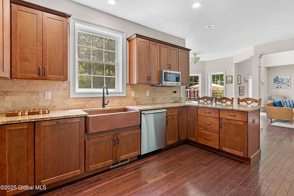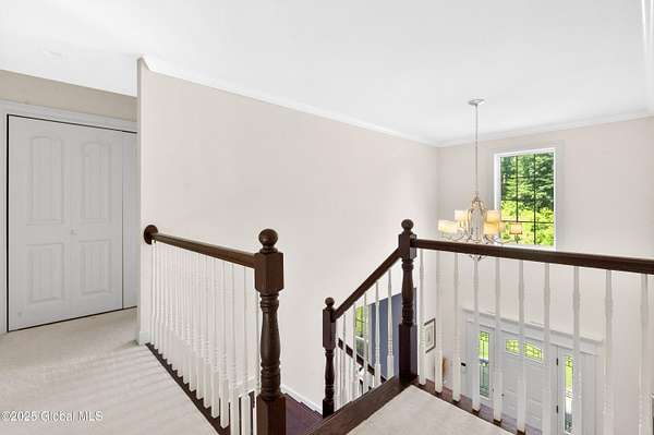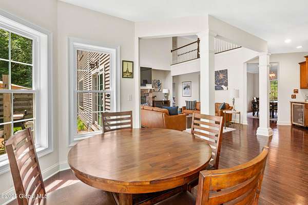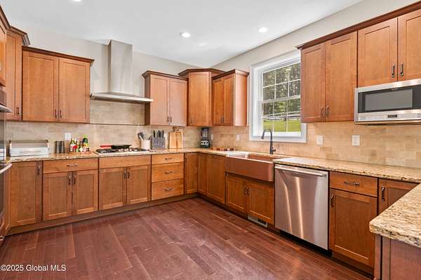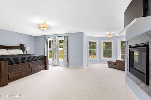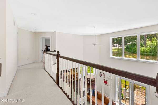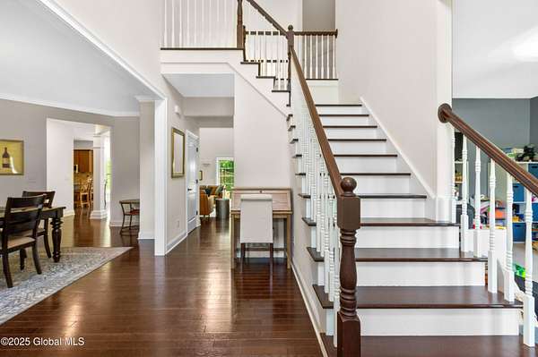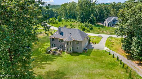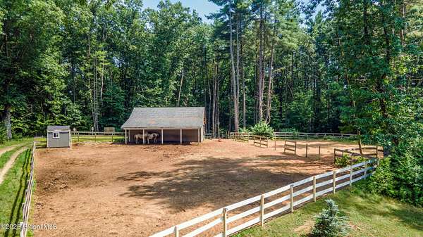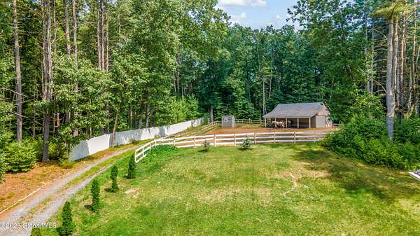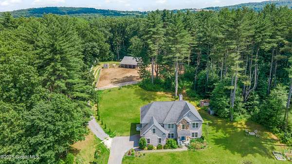 4-Acre equestrian estate 10 min to downtown. Close to Fish Creek & Saratoga Lake. 5-bd/4.5-bath in Burgoyne Estates. 9-ft ceilings, cherry HW floors & high-end doors. Designer kitchen w/ maple cabinets, SS appliances, granite countertops, island, breakfast nook, & separate coffee bar w/ wine cooler & reverse osmosis system. Great rm w/ wood FP & stone surround. Formal dining rm, family rm, & 1st-fl bdrm/office. Primary suite w/ gas FP, sitting area, separate his/her vanities, soaking tub, tiled shower, & walk-in closet. Guest bdrm w/ en-suite bath. Basement w/ egress window, 9-ft ceiling, wine room, & Sentry water filtration system. Paver patio w/ fire pit. Barn w/ 3 stalls, hayloft, water, electric & field spigot. Fenced pasture. Have 3 horses, or convert to pole barn entertainment spot!