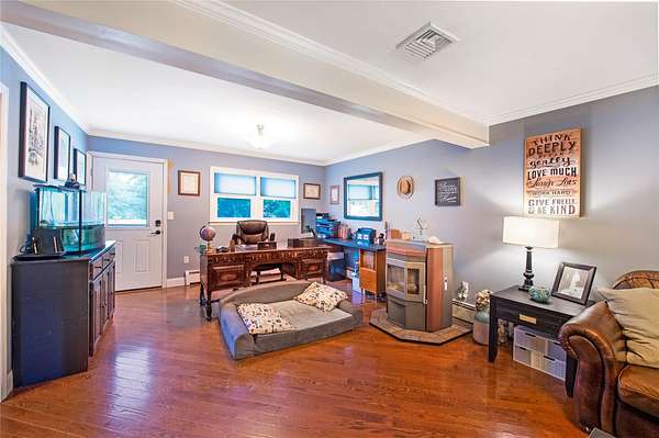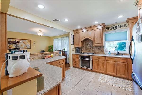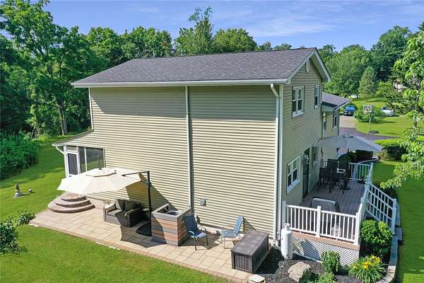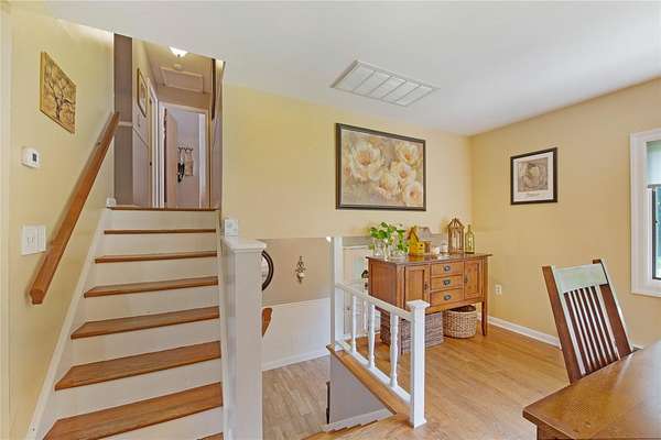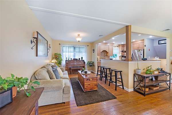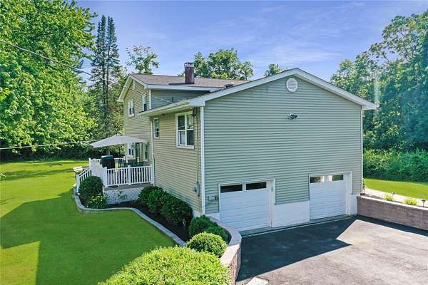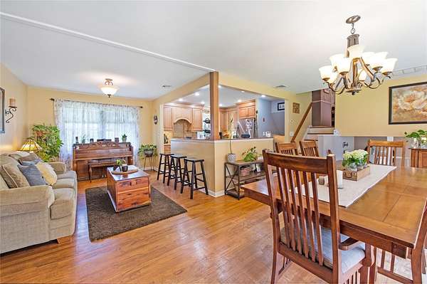 Discover this beautifully renovated 3 level living split-level residence located on a cul-de-sac and nestled on almost 3 acres of secluded, lush landscape. and beautiful paver walkways. The thoughtfully updated interior boasts modern finishes, an open concept living area, and ample natural light that creates a warm and inviting atmosphere. The spacious kitchen features sleek granite countertops, contemporary cabinetry, and stainless-steel appliances, perfect for entertaining and family gatherings. Upstairs, you'll find comfortable bedrooms with generous closet space and a stylish, fully renovated bathroom. The lower level offers versatile spaces ideal for a home office, media room, or additional recreational area as well as a modern bath laundry room combination. Step outside to enjoy the tranquility of your private retreat -- expansive yard, mature trees, and peaceful surroundings provide the perfect backdrop for outdoor activities, gardening, or simply relaxing in nature as well as family bar-b-q gatherings. This home combines modern updates with the privacy you deserve. , offering the ideal escape while still being conveniently accessible to local amenities. Don't miss your chance to own this exceptional property!