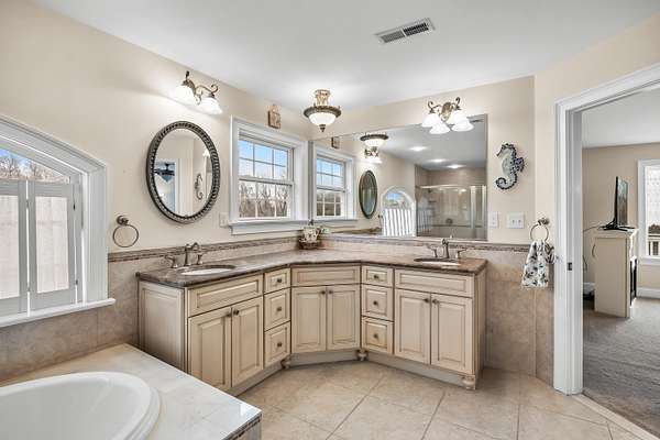 7 Bottle Creek is a five bedroom, four and a half bathroom contemporary home set on an incredibly rare three acre corner lot in Lower Township, offering a level of space and privacy that is almost impossible to find this close to the heart of Cape May County. The home features a flexible and well designed layout, including a first floor primary bedroom, multiple living and dining areas, an eat in kitchen with pantry and a full appliance package, wood flooring, tile, wall to wall carpet, a gas fireplace, bar area, storage attic, and laundry utility room. The property is equipped with central air conditioning and multi zoned gas forced air heating for year round comfort. Outdoor living is a standout with a screened porch, deck, patio, enclosed and covered patio areas all set on a cleared cul-de-sac lot with vinyl exterior and crawl space. Parking is plentiful with a detached two car garage, blacktop driveway, and additional space for up to four vehicles. The location is truly unmatched, just seven minutes to North Cape May Beach, seven minutes to the shops and restaurants on Washington Street, eight minutes to Diamond Beach, two minutes to Cape May Winery, and minutes from everything that makes Cape May County one of the most desirable coastal destinations in New Jersey.