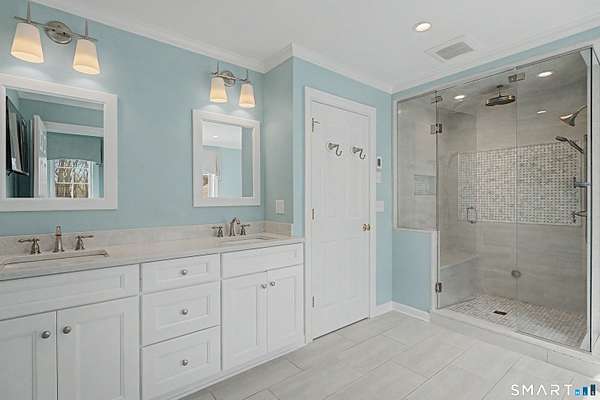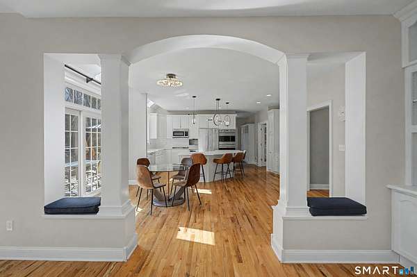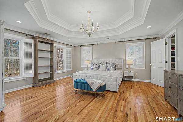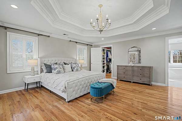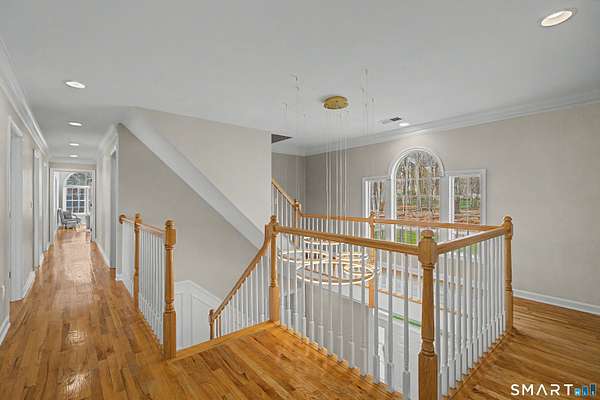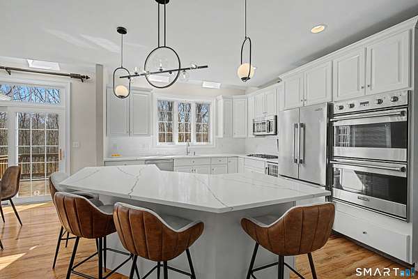 Absolutely stunning 5+ bedroom light filled home offers the perfect blend of elegance & modern updates. A dramatic 2 story foyer with a striking new contemporary fixture sets the tone.The living room with glass French doors offers flexibility as a first-floor office. The oversized family room features a soaring ceiling, custom built-ins, & a beautiful stone fireplace, flowing seamlessly into the heart of the home. The remodeled kitchen is truly exceptional, showcasing quartz countertops, Viking appliances, a wine cooler, and exquisite new lighting. Enjoy casual dining in the breakfast area, the center island, or step out to the expansive deck with a new pergola, perfect for relaxing or entertaining. A formal dining room with exquisite millwork will not disappoint. The spacious mudroom off the 3 car garage includes built-in cubbies for easy organization. Two staircases lead to the 2nd floor, where you'll find five generously sized bedrooms, beautifully updated baths, and a stunning bonus room with custom built-ins. The most luxurious primary suite features a walk-in closet with custom cabinetry and a fully remodeled bath with soaking tub & steam shower. A walk-up attic provides endless storage. The finished walk-out lower level adds 1,200 sq ft, including a gym, office, playroom with a rock-climbing wall and ninja circuit. A bedroom & full bath, ideal for guests or in-law living. Set on nearly 2 acres complete with a fire-pit in a desirable neighborhood. Meticulous throughout.