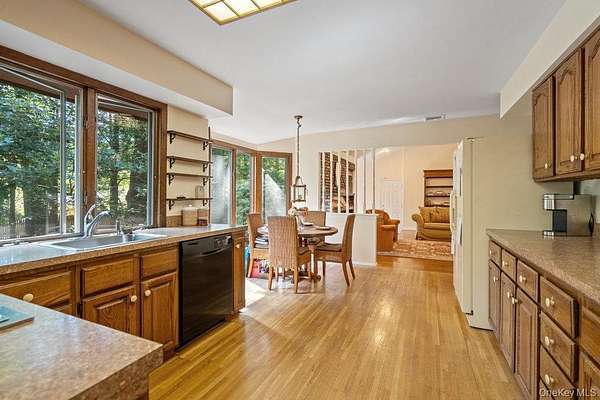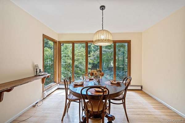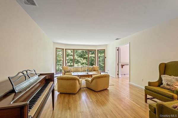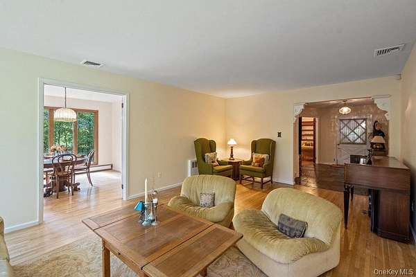 Welcome to this well maintained 4 bedroom, 2-bath sprawling ranch set on 1.60 serene acres in desirable North Dix Hills, located in the Half Hollow Hills School District. This home offers a warm and inviting layout featuring a den with cathedral ceilings and a wood-burning fireplace, The living room and dining room are enhanced by floor-to-ceiling windows that fill the space with natural light and offer beautiful views of the lush property. Rich Wood floors throughout and a brand-new roof. A finished walkout basement. with Den, game room, 1 bedroom, office and full bath. A rare find with a walking trail and endless potential, this home combines space, comfort, and the tranquility of a prime North Dix Hills location. Not-to-be-Missed!