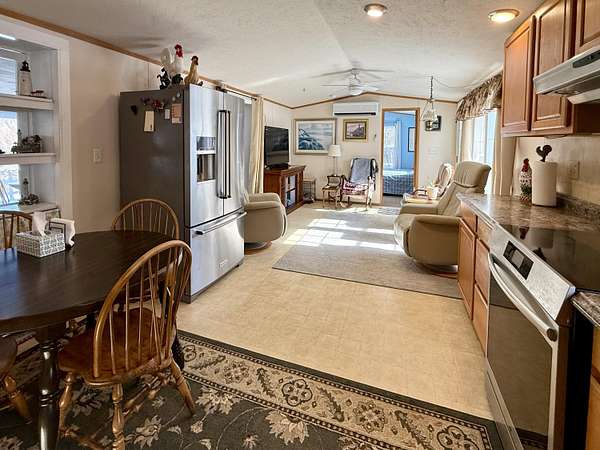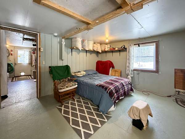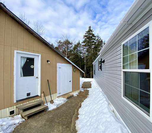 Welcome to the year-round affordable waterfront offering on the shores of Crawford Lake. Encompassing 2 surveyed acres with an impressive 200 feet of private shoreline, this property delivers the space, privacy, and natural beauty that define true Maine lake living. The setting is quiet and secluded, with mature trees, open lawn, and expansive water frontage that creates a peaceful retreat in every season. The home is a well-maintained mobile home residence enhanced by a substantial addition that serves as a spacious great room. This inviting space features generous windows and light filled interior...creating a warm and comfortable environment for gathering, entertaining, or simply relaxing. . New heat pumps provide efficient and affordable heating and cooling, ensuring comfort throughout the year while adding modern energy efficiency to the property. Step outside and experience the full benefit of the 200 feet of shoreline, offering ample room for swimming, paddling, fishing, or simply enjoying the ever-changing reflections on the water. Gather on the two large porches to enjoy Maine living at its best. This lot provides a balance of privacy and usable outdoor space, ideal for lawn games, gardening, or evenings by the fire with the lake as your backdrop. Adding exceptional versatility is the detached bunk house, designed to serve as both a workshop and guest accommodations. This separate structure includes its own half bath, offering convenience and privacy for visitors while also functioning as a practical workspace for hobbies, storage, or projects. Whether you are seeking a peaceful full-time residence, a seasonal retreat, or a property with income potential, this waterfront home offers flexibility, comfort, and an authentic connection to nature. Conveniently located just 20 minutes from Calais for shopping and dining, and approximately 30 minutes from the Bay for saltwater recreation, this property combines seclusion with accessible lakeside setting.