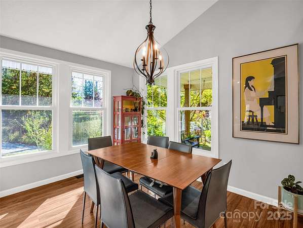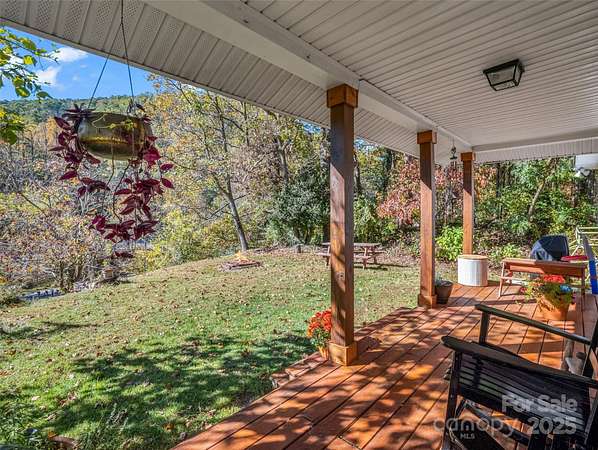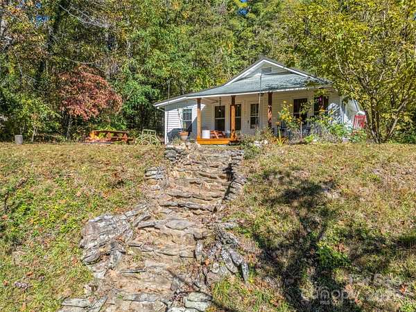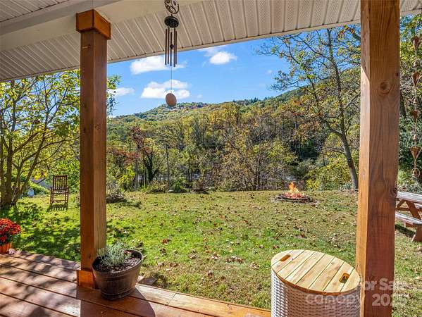 Charming Arts and Crafts style home convenient to all Asheville has to offer! Located just 3 miiles from Blue Ridge Parkway, less than 2 miles to groceries and dining, and convenient to downtown Asheville. Vaulted ceilings and lots of windows gives a bright and airy feel to enjoy cooking, entertaining or just relaxing! Primary ensuite with jet tub. Two additional bedrooms, updated guest bathroom, large mud/laundry room all on one level. Enjoy the mountain view from your covered front porch or an evening relaxing at the fire pit. Storage shed to house all of your outdoor toys situated on 5.3 acres.