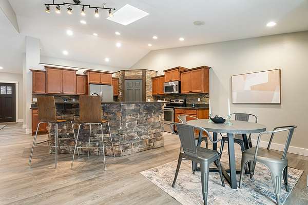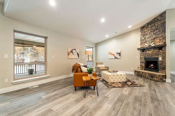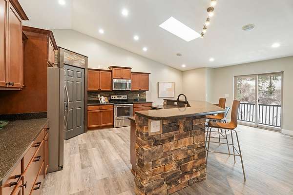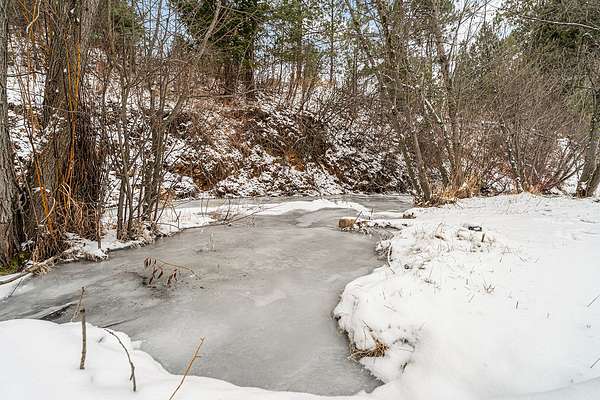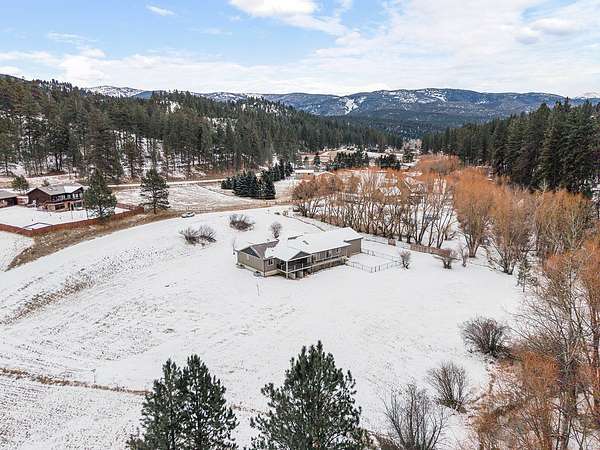 Incomparable location with approx 50 yds of year 'round creek frontage! This almost 5000sf home sits on 1.77 creekside acres with trees, privacy, and abundant wildlife. Upstairs/main level includes spacious 4bed/2bath main floor living. Primary bedroom suite has an executive walk-in closet with custom shelving and built-ins so rare in most homes. The en suite bathroom features a large walk-in shower and soaker tub that looks out on the creek. Two distinct vanity areas with vessel sinks round out the luxurious primary suite experience. You will never have too many cooks in this kitchen - it's big enough to accommodate your entire crowd, whether entertaining or just gathering your own group. Adjacent living room is highlighted by a stunning rock fireplace (natural gas insert), mantle with uplighting, and plenty of windows to look out on the green space and running stream. Lower level is partially finished with a bar/recreation area, a full bath that is plumbed and includes fixtures, plus a finished half bath. Two more big bedrooms are fully framed and include egress windows. The home includes central vac, is wired for sound with volume control in most rooms, and intercom system. The oversized 3-car garage is approx 1172 sf and extra tall. Garage doors are 9' tall and the larger door is 18' wide. 380 hunting district with short jaunt to multiple USFS access points.There is amazing potential in this home which has recently had new flooring, trim and paint, new front composite deck and steps, with a few projects still on the list to complete. See it before it gets away! Seller will consider buyer credit for closing costs, buy-down or further finish work. *sf is taken from attached building/floor plans. Buyer to verify all listing information and square footage. SF and number of bedrooms varies from assessor square footage figures.