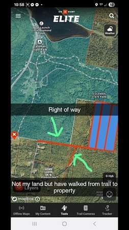 Diamond Pond to a right on Rusty's Road. Turn left at the T on Sugar Hill Road. Go all the way to the end of the road. Go through the woods a short distance to the beginning of the right of way. (do not use private driveway on the right). Recommend using some sort of GPS system such as ONXHUNT, etc