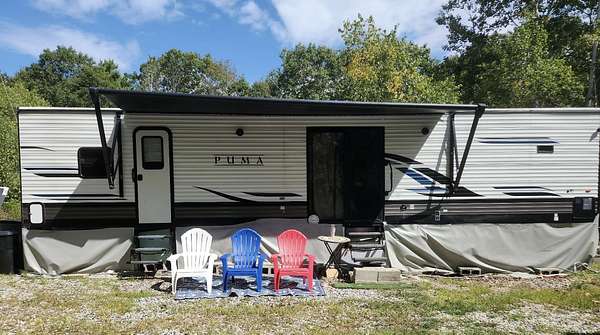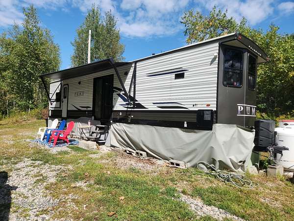 A unique and attractive opportunity! This property presents an exceptional turnkey solution, ready for immediate use and future development. The site has been fully cleared, and a 200-foot driveway is securely in place, ensuring excellent and convenient access. A significant advantage is the successfully installed 200 amp electrical service directly on site, providing immediate and reliable power availability. For immediate enjoyment, a 2023 40' Puma Destination trailer (39PFK) has been thoughtfully set up for year-round use and is fully connected to both the well and septic systems. The trailer features a front kitchen with two opposing slides, a walk-through bath and a read bedroom with a king bed. Schedule a private showing to experience this location firsthand to fully appreciate its potential and the convenience it has to offer.