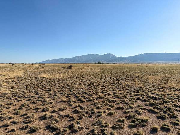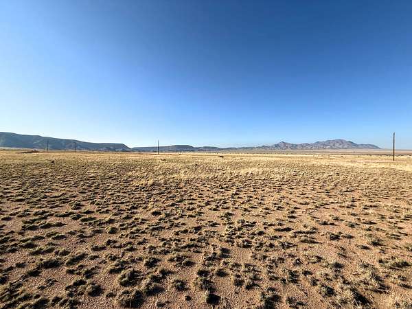 The property consists of 5.02 acres of mostly flat land with light desert vegetation and open views of the Manzano Mountains. It is situated in a quiet area with no immediate neighboring houses, offering a private setting and unobstructed mountain scenery. The land is zoned for a single-family home with a minimum of 2,000 square feet of enclosed living space, excluding garages, porches, or basements. Mobile homes, RVs, and temporary living structures are not permitted, and homes must be fully constructed and approved before occupancy.