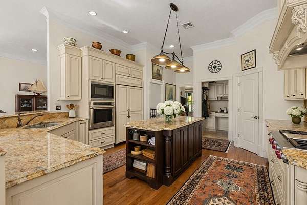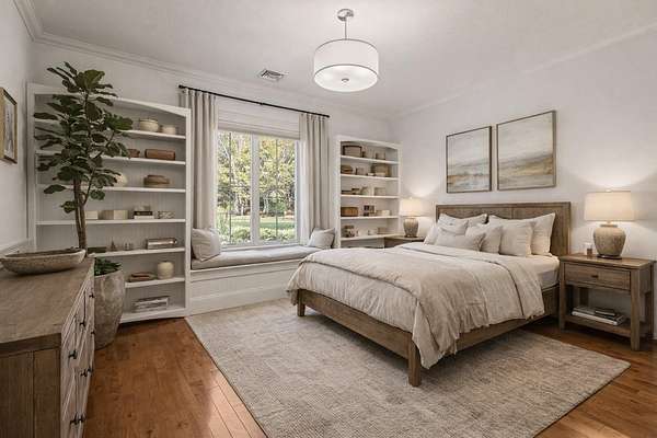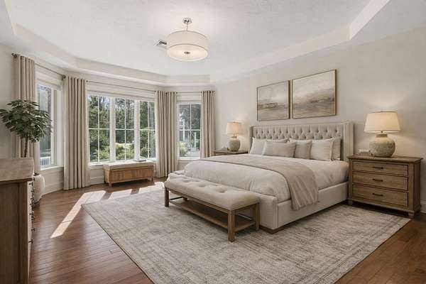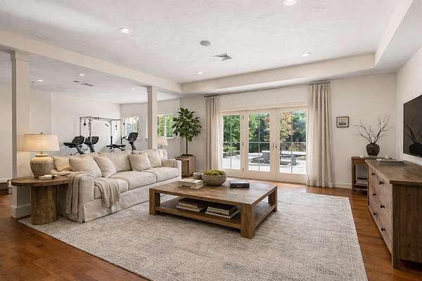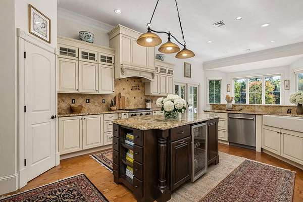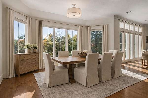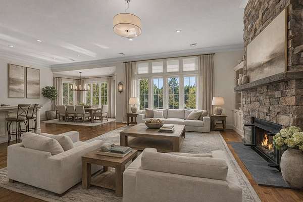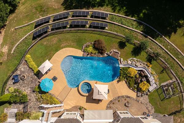 EXTREMELY RARE and SPECTACULAR south-facing waterfront estate is located in the Oyster River School District with 12.5 private acres and 760 feet of frontage on the Bellamy River! The site borders the 335-acre Kingman Farm and its 3-mile trail system. Designed to impress, the sprawling single level home with a full walkout lower level boasts over 5,600 square feet of refined living space with 5 beds and 3.5 baths! The designer kitchen features Wolf and Sub-Zero appliances, custom cabinetry, and stunning stone tops! The main level flows effortlessly through a spacious great room, formal dining room, and an inviting 4-season sunroom. The master suite offers a gas fireplace, expansive walk-in closet, and a spa-inspired en-suite boasting a soaking tub, dual vanities, and a glass-enclosed shower with multiple heads and body sprays! The walkout lower level offers an additional great room, two guest bedrooms, a cozy home theater, gym, wine cellar, and ample storage. Outdoors, the excitement continues with a south-facing oasis designed for pure enjoyment—featuring a heated, saltwater Gunite pool with integrated hot tub, waterfall, sunning beach, and a 21-foot slide! Enjoy modern comfort and peace of mind with radiant heat, central AC, a back-up generator, security system, RV parking, shed, and a heated 3-car garage. The property’s solar array produces an impressive 12.5MWh annually, supported by two Tesla batteries, enabling off-grid operation and providing roughly 84% of the home’s power needs. The perfect blend of natural beauty, advanced technology, and resort-style living! The interior images shown have been virtually staged and visually enhanced to showcase what the individual spaces could look like with new furnishings, artwork and decor.