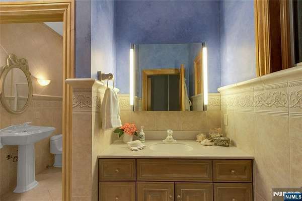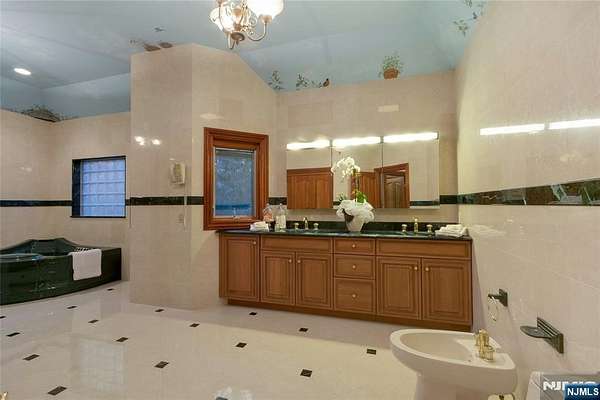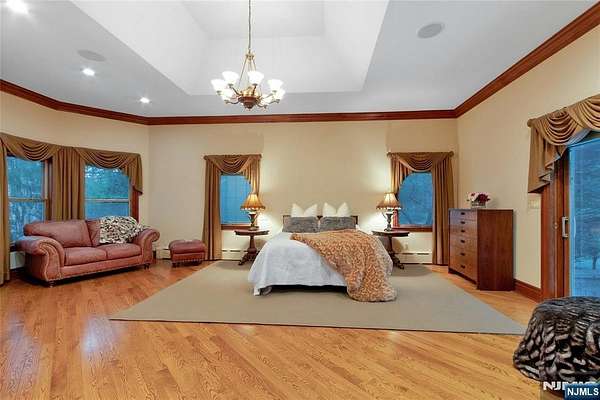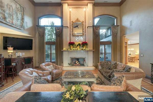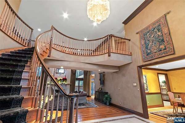 Custom Designed Manor on almost 2 acres of private property in MahwahaEUR(TM)s prestigious Rio Vista. This extraordinary 10,000 sq ft residence is not simply a home; it is a celebration of artisanship, scale, and refined living. Solid mahogany doors welcome you into a dramatic foyer, with sweeping curved staircase which rises with sculptural perfection, impeccably cut solid wood spindles and trim. The foyer flows into a soaring living room, where radiant heat continues seamlessly from marble to hardwood floors. A magnificent floor-to-ceiling feature fireplace is flanked by huge windows which fill the room with natural light. Ceiling molding? Carved from a single piece of solid wood, creating a level of craftsmanship rarely seen today. The formal dining room showcases an intricate inlaid floor of maple and walnut, setting the stage for elegant entertaining. The West Wing primary suite is its own sanctuary, complete with fireplace, private patio, 2 walk-in closets, and immense bathroom (easily could be dual baths). Sophisticated black walnut study. Expansive cherry chefaEUR(TM)s kitchen, with island, pantry, and ready for the culinary enthusiast. Second level with 4 beds, 3 baths, theatre and games room. The 3rd level is set as a performance arts stage. Finished basement with party/bar, games, bedroom 6 and bathroom. Built with integrity and intention, this is a home that stands resolute, grand, warm, beautifully detailed, and created to last for generations, just waiting for your touche