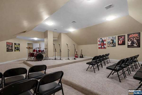 Custom Designed Manor on almost 2 acres of private property in Mahwah’s prestigious Rio Vista. This extraordinary 10,000 sq ft residence is not simply a home; it is a celebration of artisanship, scale, and refined living. Solid mahogany doors and dramatic foyer welcome you. A sweeping curved staircase which rises with sculptural perfection, impeccably cut solid wood spindles and trim lead into a soaring living room with magnificent floor-to-ceiling feature fireplace flanked by huge windows which fill the room with natural light. The ceiling molding is a single piece of solid wood, creating a level of craftsmanship rarely seen today. The formal dining room showcases an intricate inlaid floor of maple and walnut, setting the stage for elegant entertaining. The West Wing primary suite is its own sanctuary, complete with fireplace, private patio, 2 walk-in closets, and immense bathroom (easily could be dual baths). Sophisticated black walnut study. Expansive cherry chef’s kitchen, with island, pantry, and ready for the culinary enthusiast. Second level with 4 beds, 3 baths, theatre and games room. The 3rd level is set as a performance arts stage. Finished basement with party/bar, games, bedroom 6 and bathroom. Garages can house 5 cars, one garage is heated. Marble and tile floors radiant, LR,DR,Study warm coil heat. Built with integrity and intention, this home stands resolute, grand, warm, beautifully detailed, and created to last for generations, just waiting for your touch