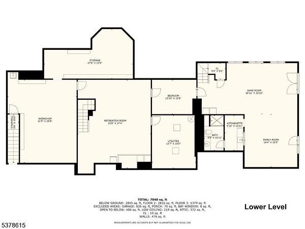 - Basement, Bathroom x 5, Bedroom x 5, Den, Dining Room, Family Room, Kitchen, Living Room, Workshop