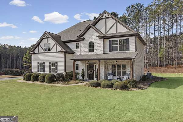 FANTASTIC CRAFTSMAN HOME WITH BRICK FRONT IN SOUGHT AFTER HARRIS ESTATES ON A 1.60 ACRE LOT!! Granite Countertops in the Kitchen with stainless appliances, marble top island with breakfast bar, hardwood flooring and large pantry. Family room that adjoins the Kitchen with hardwood flooring, fireplace with tiled surround & shiplap & wood paneled wall. Dining Room with hardwood flooring & picture molding, sitting room or office with hardwood flooring. Primary bedroom with double trey ceiling with sitting area, tiled primary bathroom with his and hers granite top vanities, jetted tub, separate shower & walk-in closet. Walk-in storage closet and additional storage behind the primary walk-in closet. 3 guest bedrooms upstairs, all with closets with guest bathroom in hallway with vanity & shower/tub. Fabulous vaulted screened-in porch overlooking backyard with firepit perfect for those gatherings by the fire!! Rocking chair front porch, corner lot!!