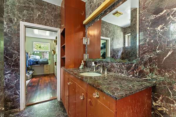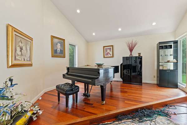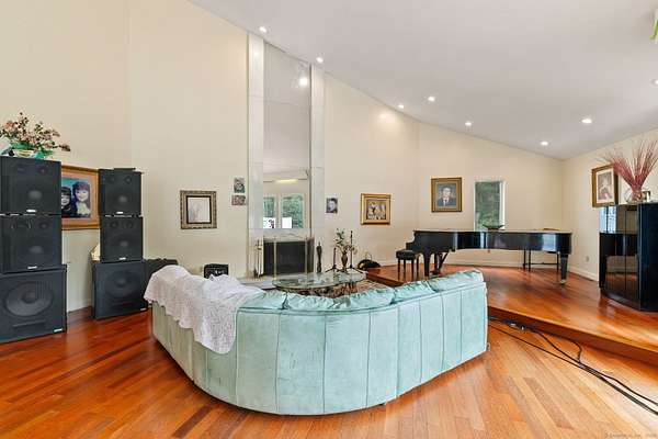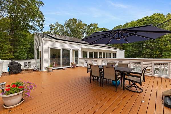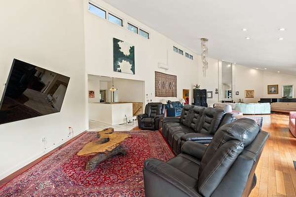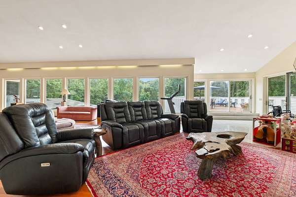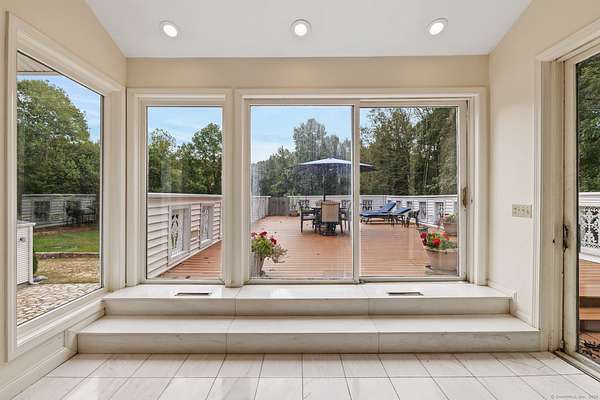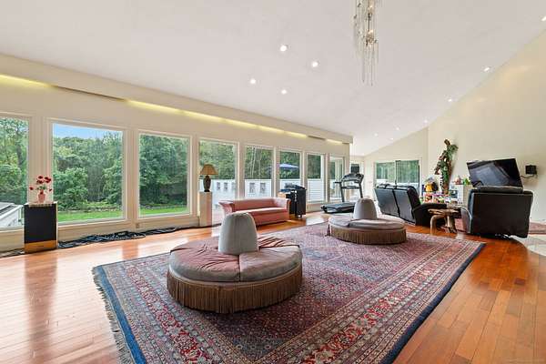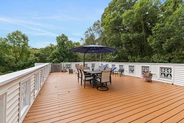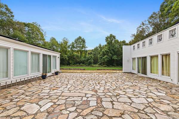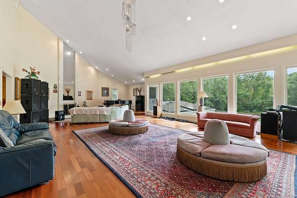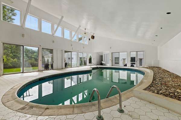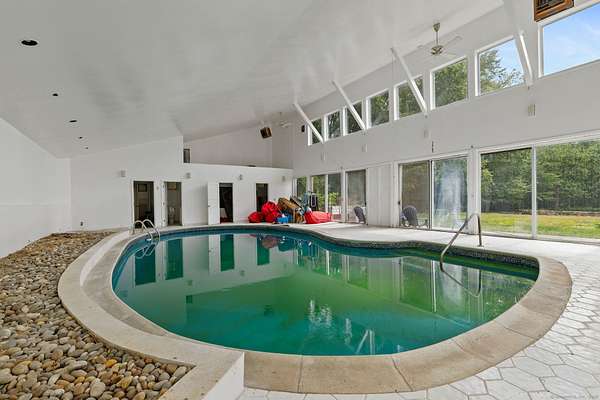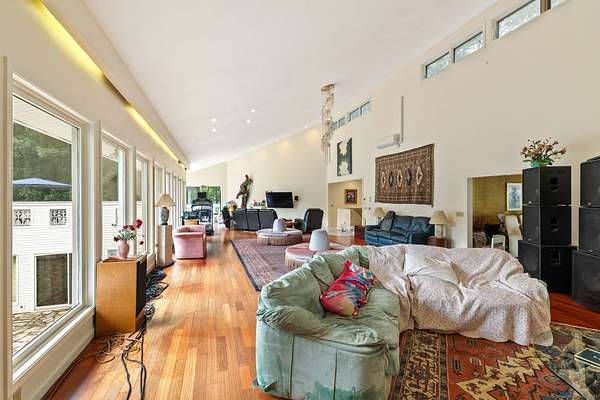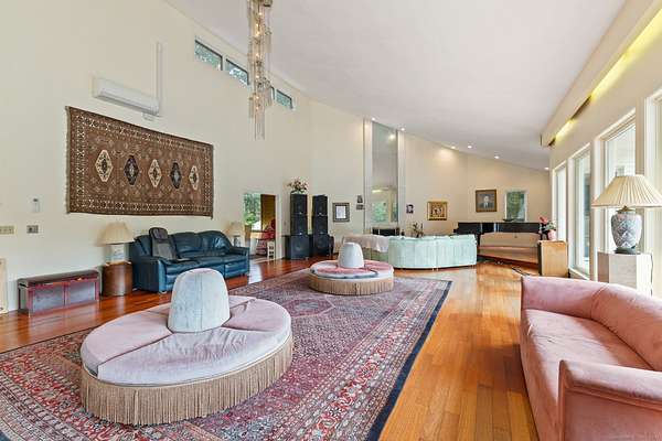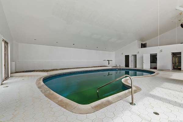 Tucked at the end of a private drive, 7 Hart Road in Guilford is an architectural gem wrapped in history and elegance. The Thorn Birds author Colleen McCullough designed and built this home as her personal sanctuary-a retreat balancing creative solitude with proximity to New York. Featuring 6 beds, 5 baths, and two primary suites, the residence showcases a grand marble foyer, sweeping staircase, and a 72-foot-long living room with soaring ceilings and panoramic views. Enjoy a 920 sq. ft. open-air deck, indoor pool, and owned solar panels on 10+ buildable acres of serene land located right next to Cockaponset State Forest. Perfect for those who appreciate architectural artistry and don't mind adding their own modern touch. Minutes to Guilford Green, Bishop's Orchards, Westwoods Trails, and I-95, this property blends privacy, history, and endless potential.