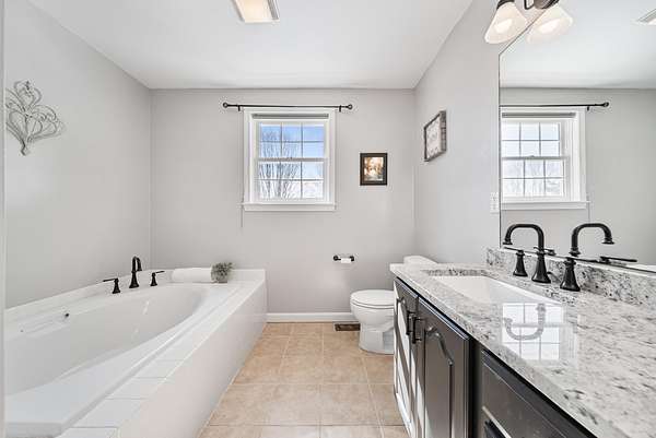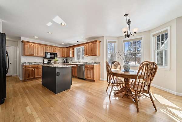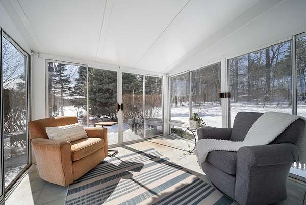 Fall in love with this stunning 4 Bedroom, 3 Bathroom Colonial nestled at the end of a private road on 2.49 peaceful acres. Imagine spring evenings on your charming Farmer's Porch, welcoming guests into the open foyer featuring an elegant quarter-turn staircase. The heart of the home is a beautifully updated kitchen, complete with newer appliances, cherry cabinets, granite counters, and a center island that flows seamlessly into a sun-filled breakfast nook with a bay window. The inviting living room features a wood-burning fireplace and an abundance of natural light pouring in from the adjoining southern facing 3-season enclosed porch which is perfect for almost year-round enjoyment. Entertain in the formal dining room or unwind in the den, which doubles as an ideal home office. A guest bath with convenient laundry completes the first floor. Upstairs, the generous primary suite offers a roomy bedroom, walk-in closet, and a luxurious full bath with separate soaking tub and shower. Three additional bedrooms and a full bathroom provide room for everyone. The full unfinished basement presents endless possibilities for extra storage or future finished living space. Step outside to a back deck overlooking a wide open yard with plenty of room to run, play, garden, or simply soak in the surroundings. Central AC keeps summer nights comfortable, and a new roof offers peace of mind for years to come. The location couldn't be better, just minutes from Amherst Country Club and Amherst Village, the touchstone of the beloved Amherst community, known for its warm neighborhood spirit and cherished traditions like the legendary 4th of July parade. Close to top-rated schools, restaurants, and shopping, this is the one you've been waiting for!