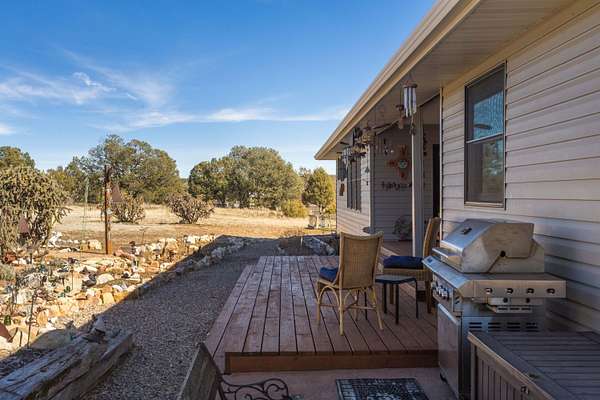 Tucked away on 2.5 private acres in the East Mountains, this well-kept single-level home offers the best of peaceful country living just 18 mins from Albuquerque. The flexible floor plan features 3Br plus a generous family/game room, formal dining, and a separate study. The remodeled kitchen is open to the living room and breakfast nook. Updated living spaces feel warm and inviting, with large windows that bring in natural light and views of the mountains, trees and landscaping. Outside enjoy a covered porch with newer redwood deck, whimsical yard art and a true sense of privacy. Two year old roof and an attached 2-car garage with newer door has extra storage and a carport. Storage shed and convenient paved road access complete this move-in ready retreat. Entranosa water hook-up available.